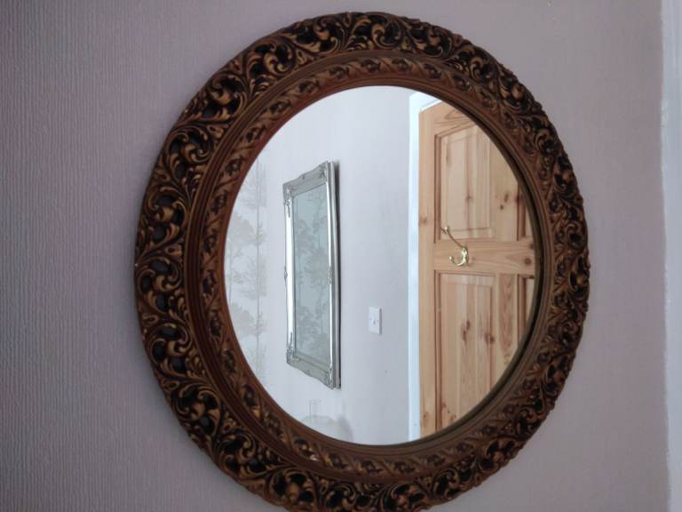 Attractive mirror with scalloped edges. Plus glue.