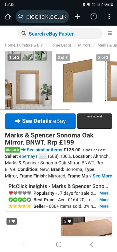 M&S Sonoma mirror,perfect condition, like new.I paid £199