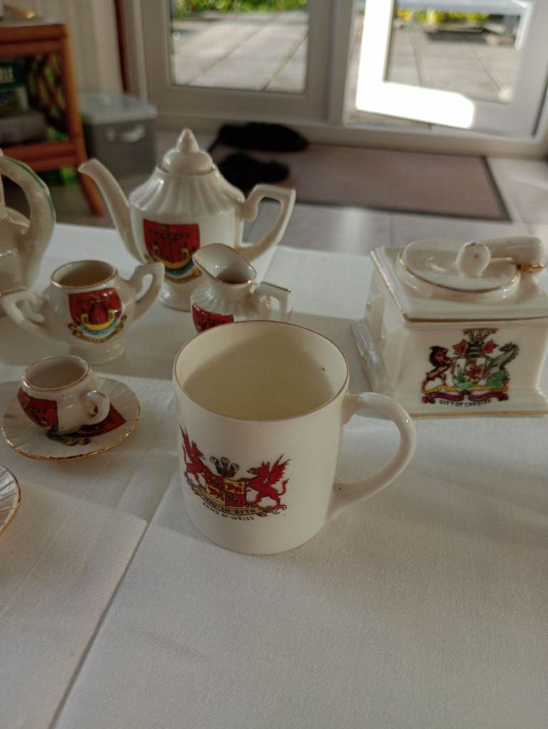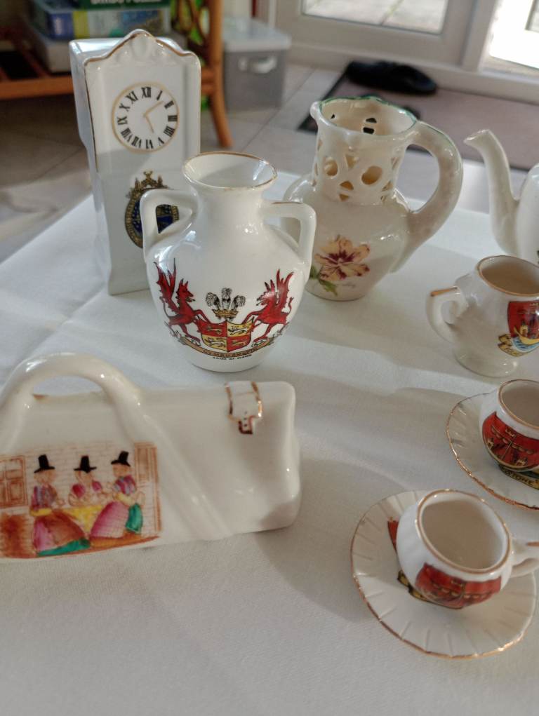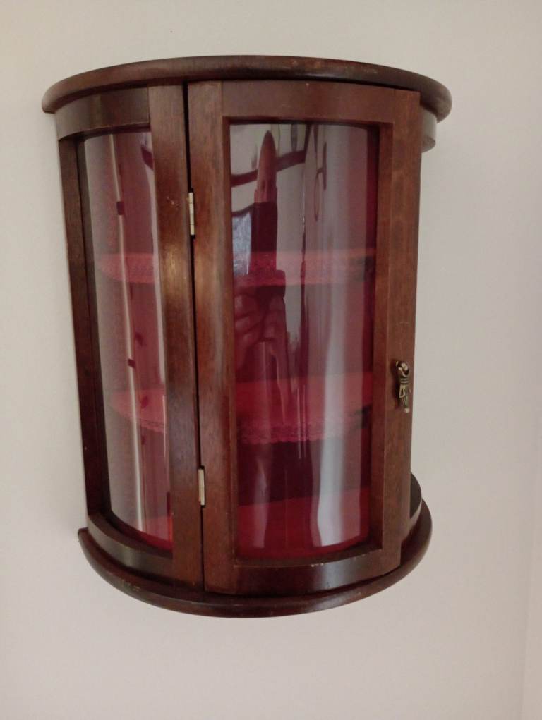 For sale mixture of miniature china with display cabinet approx size of cabinet 13 inches x 11 inches x 6 inches deep