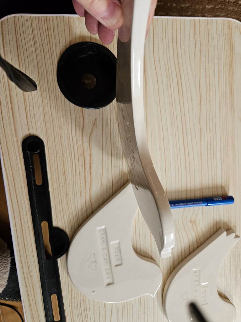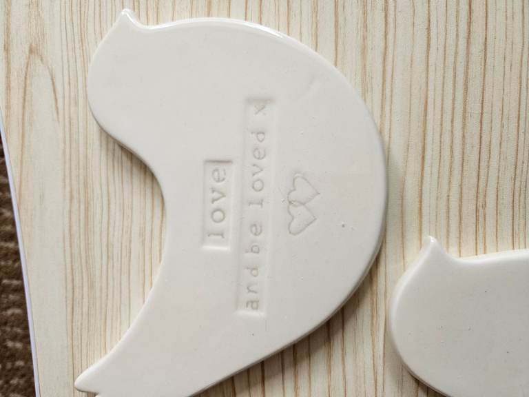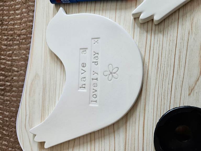New box of 3 glazed ceramic birds with words . Thick quality not thin cheap.ones. Hanging slot on back ready to be put up. Pen gives a rough idea of the size. Lovely gift will fit all decors as neutral colour. £5 the set of 3 cash collect hayes ub3 no offers holding or delivery
