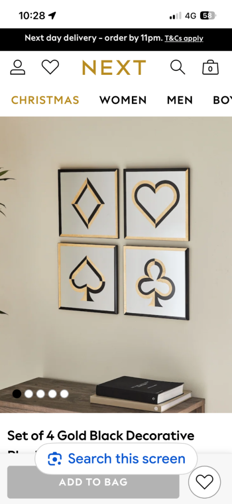 Next playing cards set of 4 mirrors