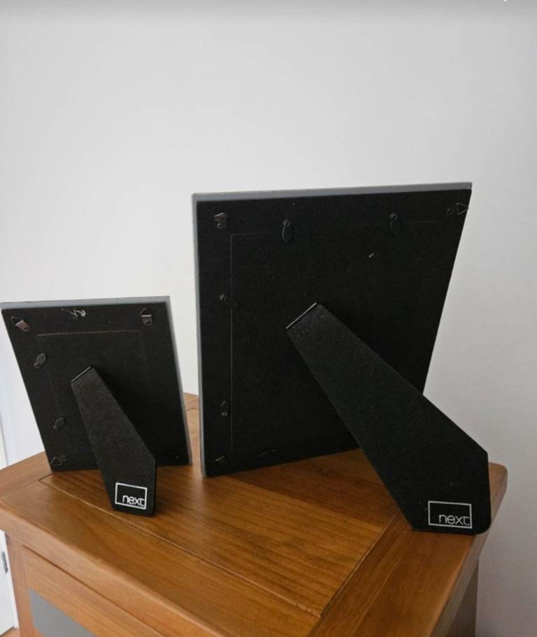 Two matching frames. See photo 3. The frame is glass with silver effects. One to fit photo 10" x 8" and the smaller one to fit photo 6" x 4" perfect condition never used