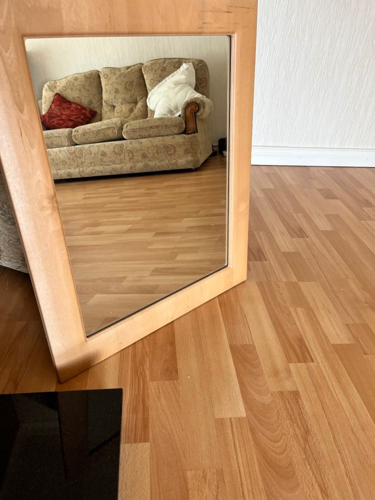 Posting for 11+ monthsOak Veneer framed wall mirror~ smoke free/ pet free home