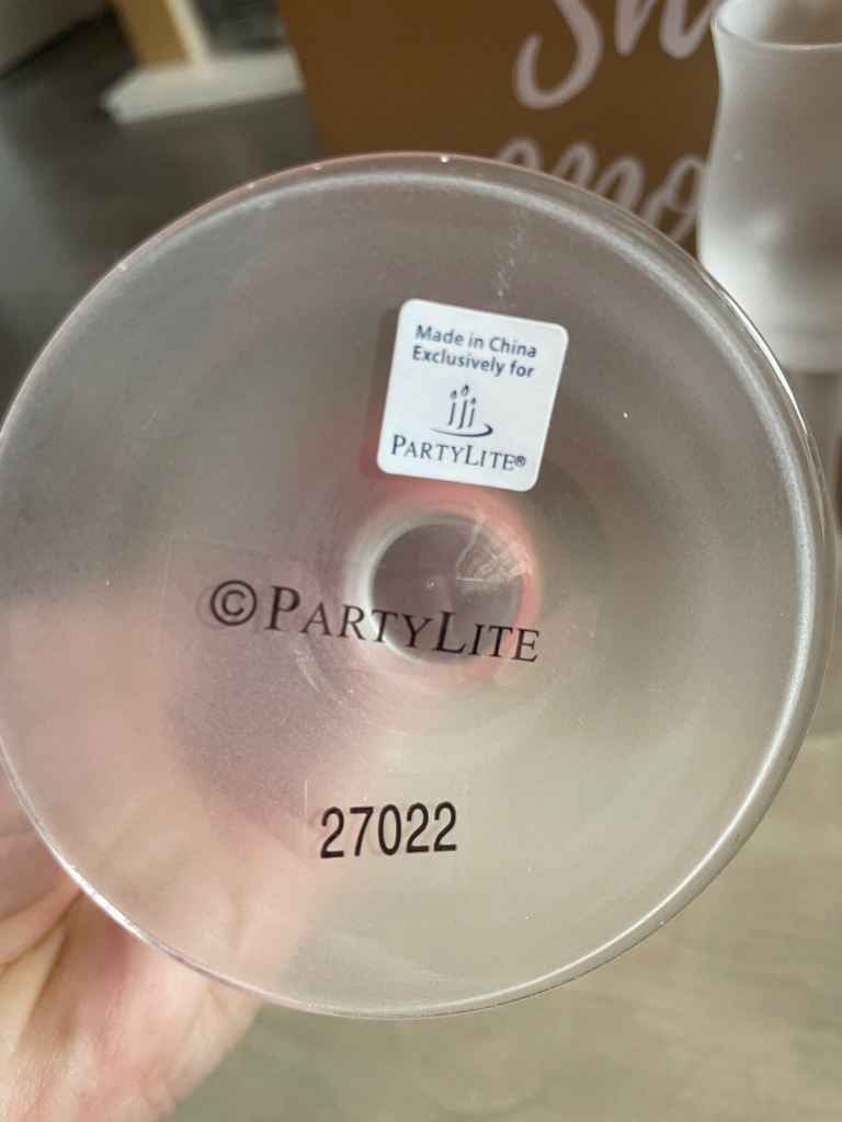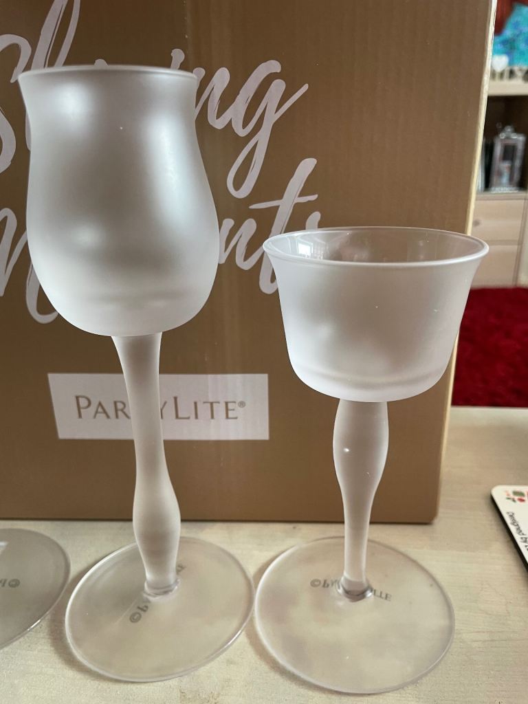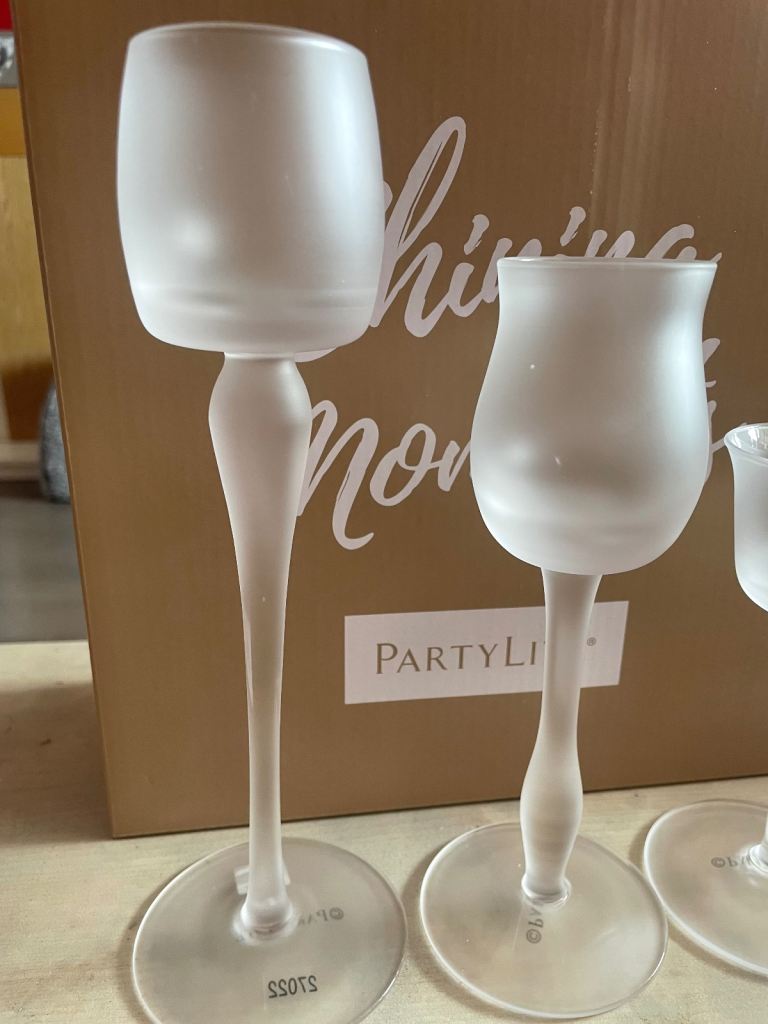 Set of 3 party lite tea light candle holders. In a wine glass style. 2 sets available all brand new in box. Never been used