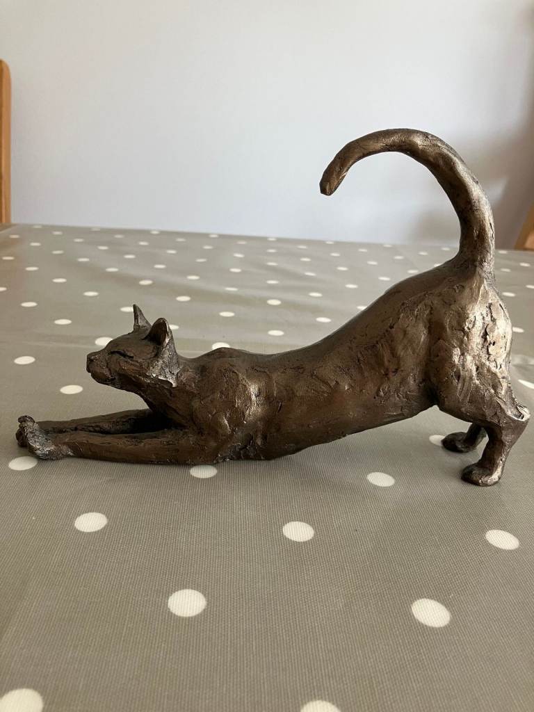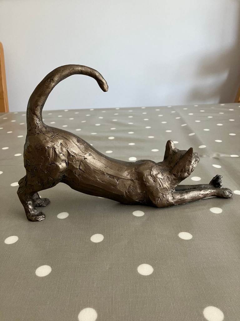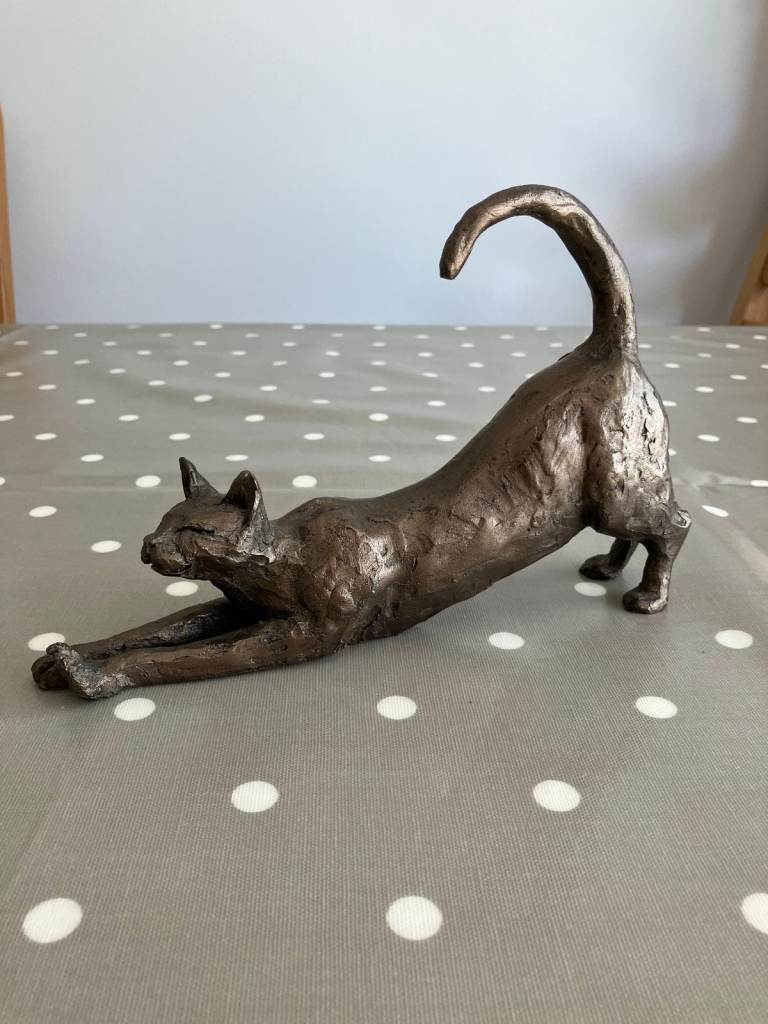 Stretching cat 'James' Cold Cast Bronze cat sculpture Frith by Paul Jenkins ornament 6inches high - 9inches long