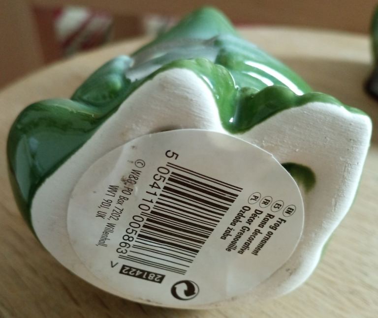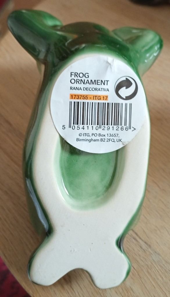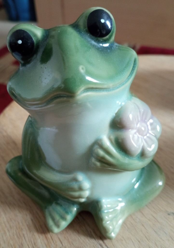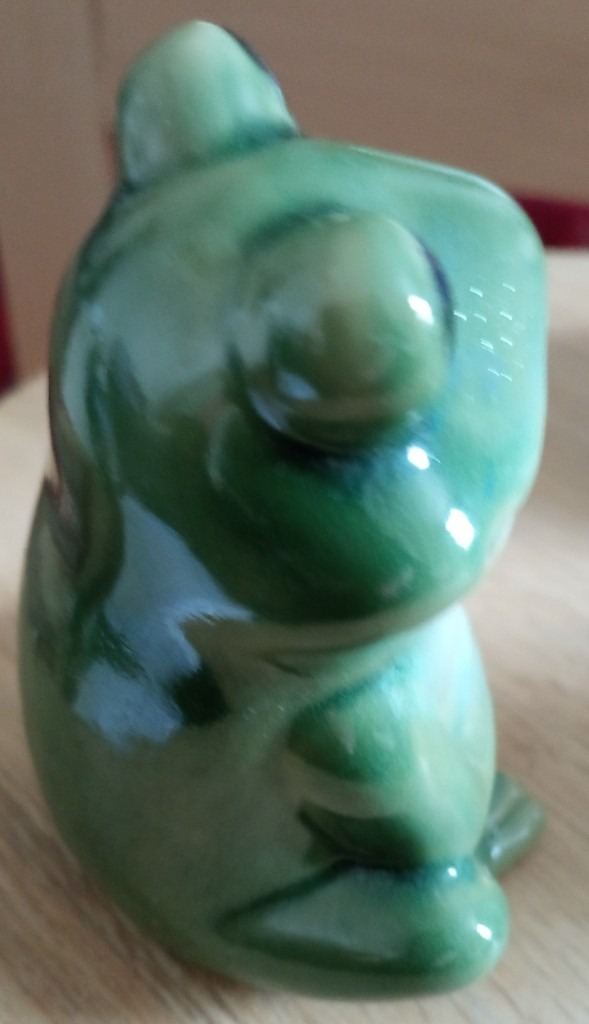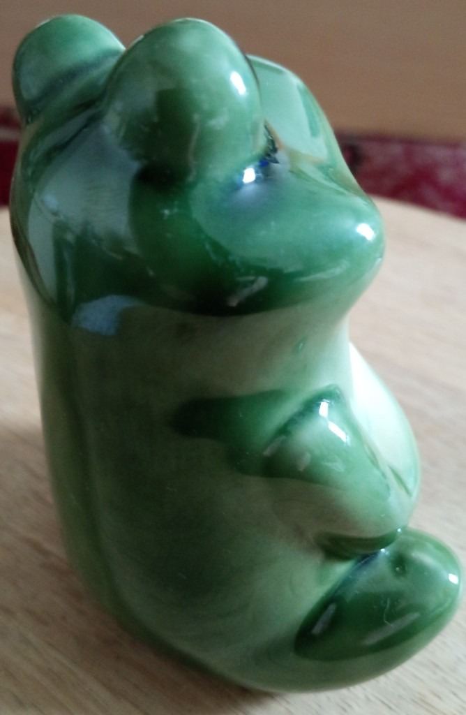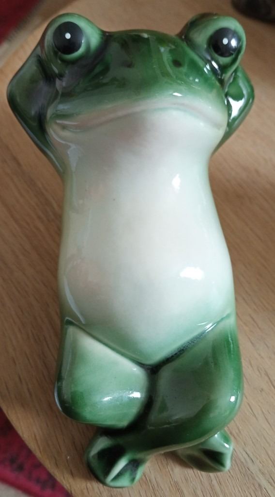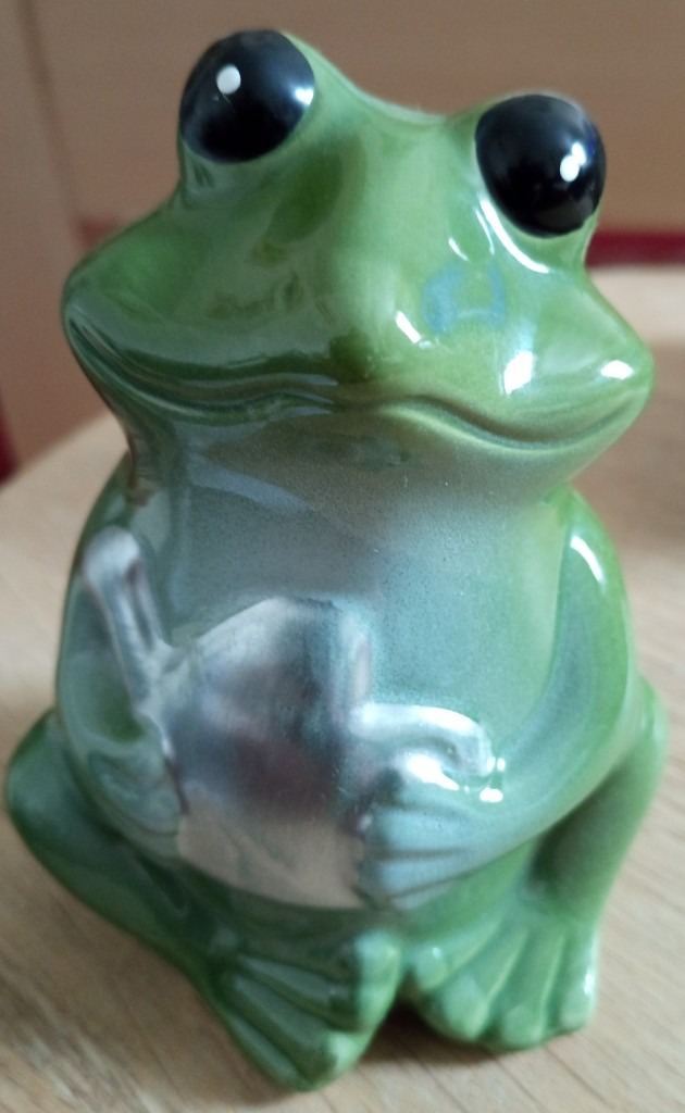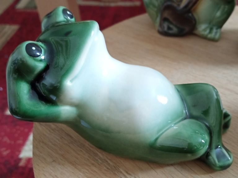Lounging frog - roughly 11.5cm long (at longest point), 9cm wide (at widest point), 8cm high (at highest point) - see photos for underside condition
