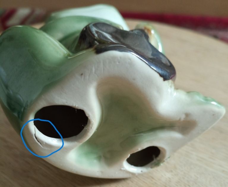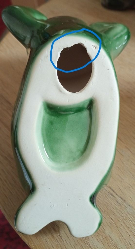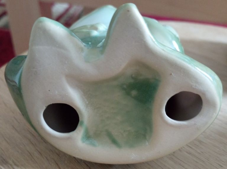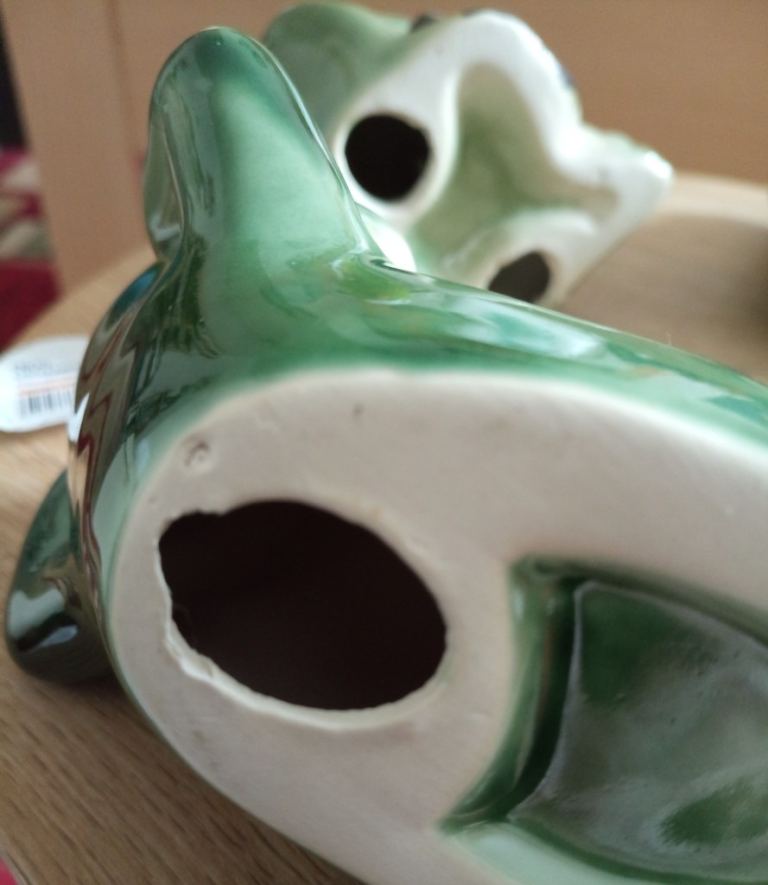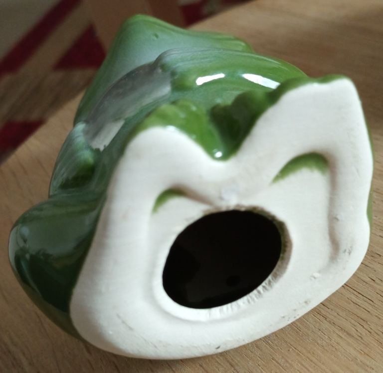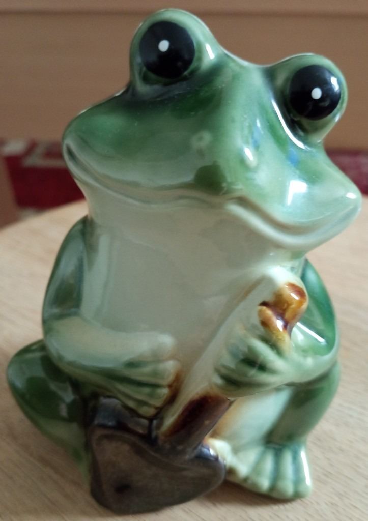 Spade frog - roughly 11.5cm high, 9cm wide (widest point), 6cm deep (at deepest point) - see photos for underside condition