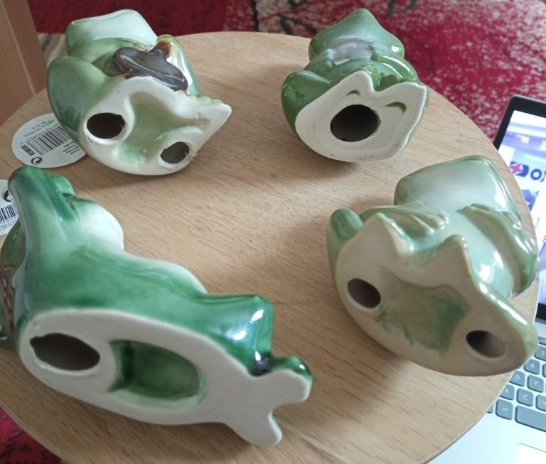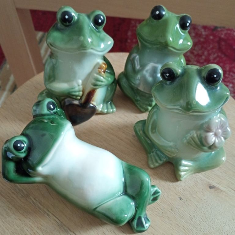 Set of 4 glazed ceramic novelty frog ornaments