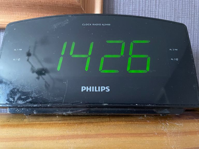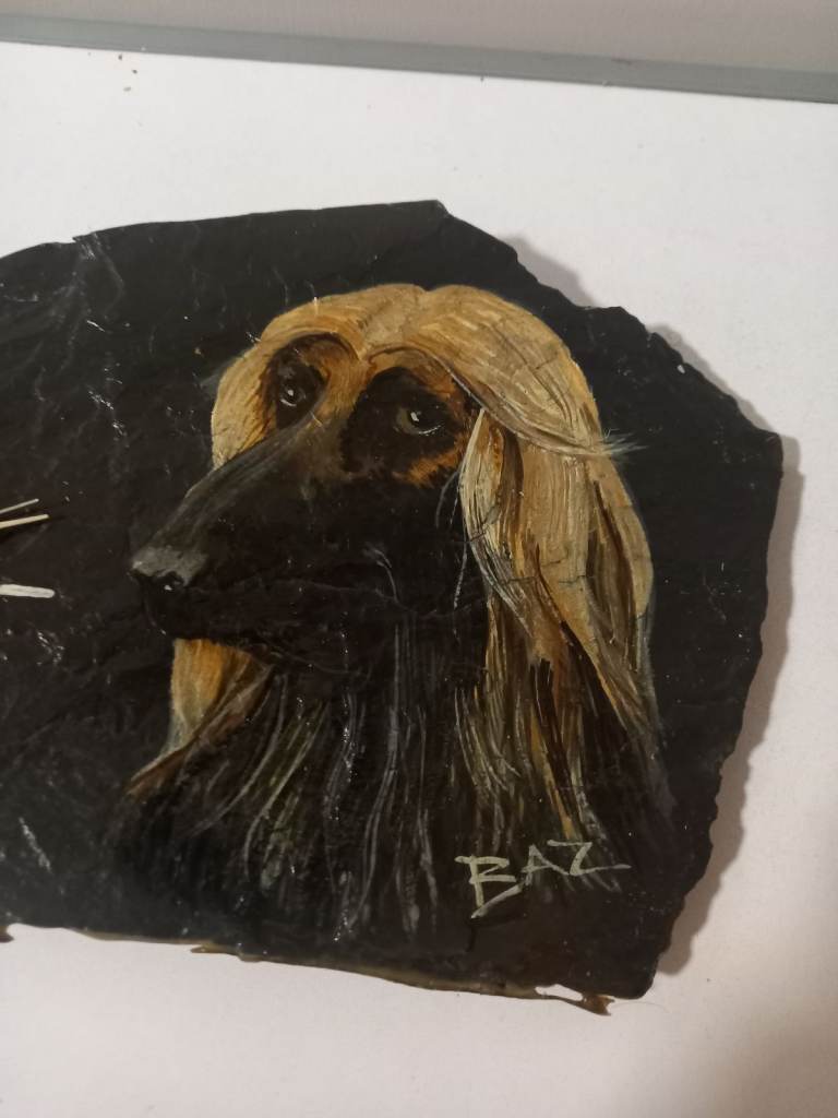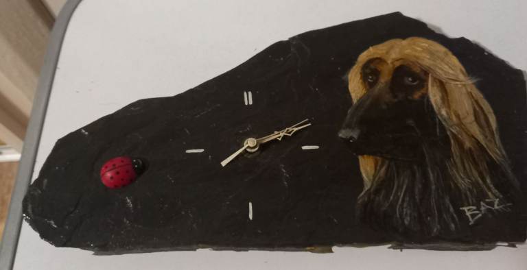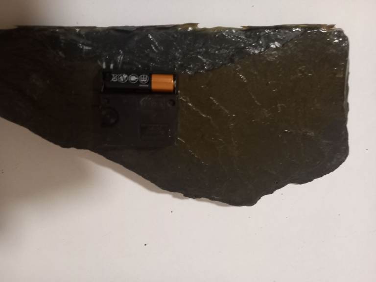 Heavy slate dog battery clock, 29cm W, 16cm H..