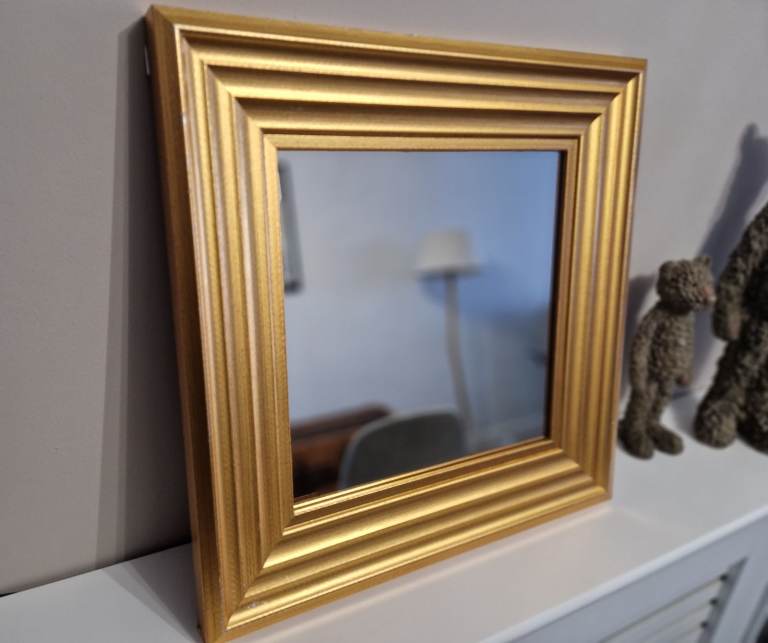 square, gold framed mirror