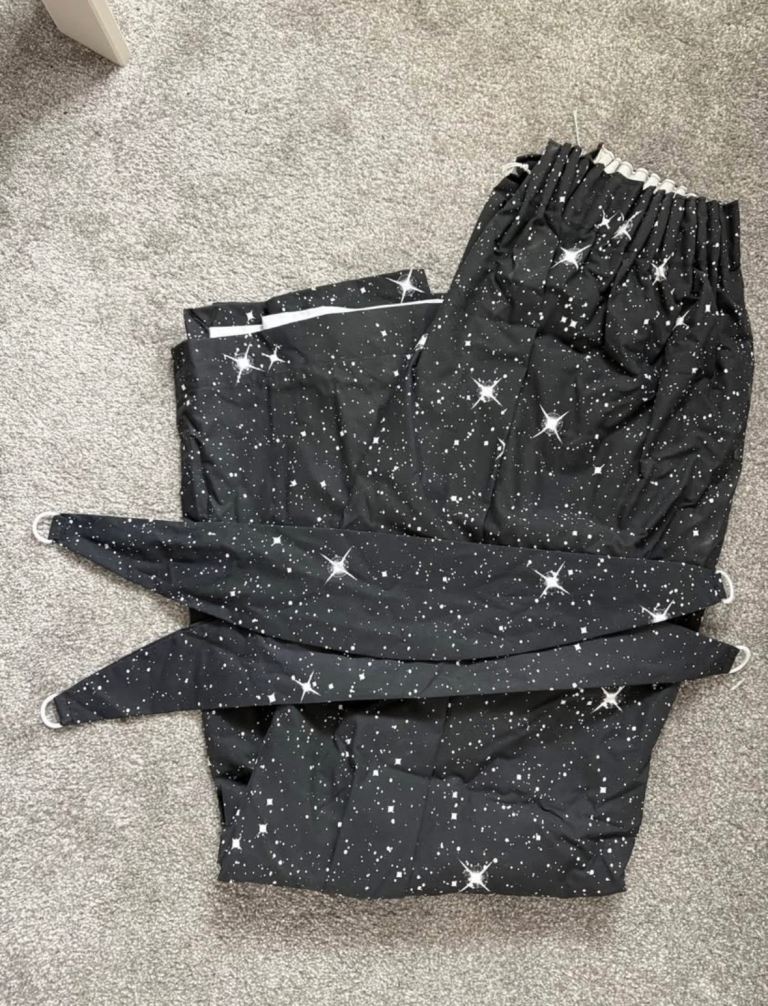 The canvas posters, curtains and lamp are in excellent condition. The bedding sets are in good condition.