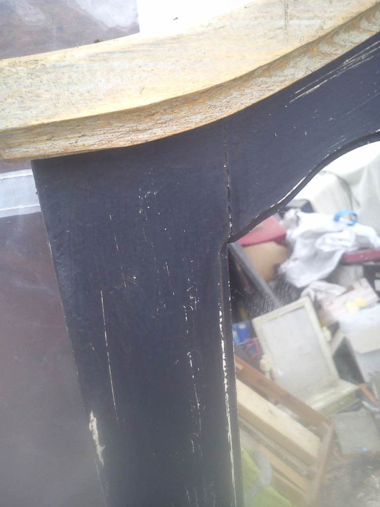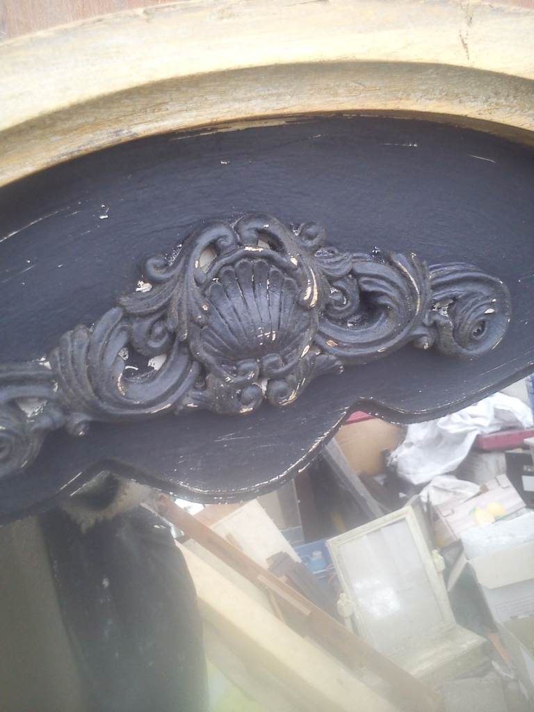 Upcycled, shabby chic, large mirror, painted with black chalk paint, distressed, then protected with wax.