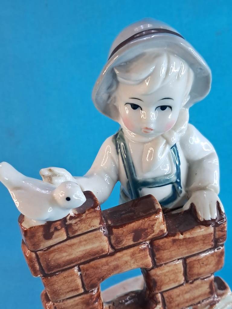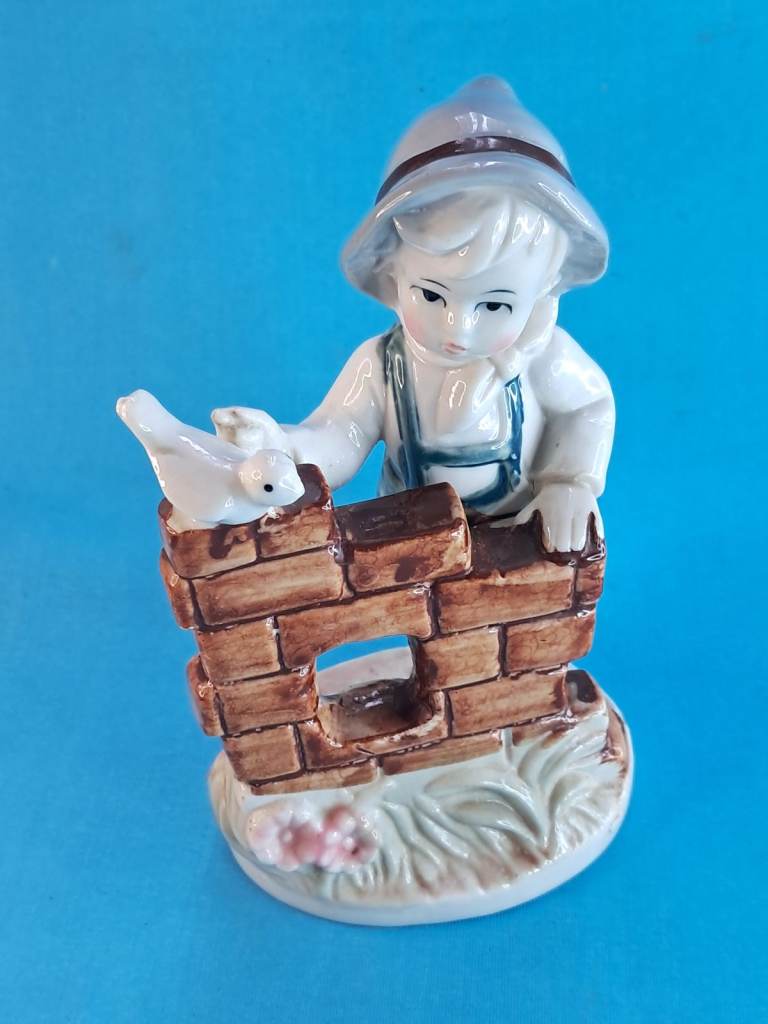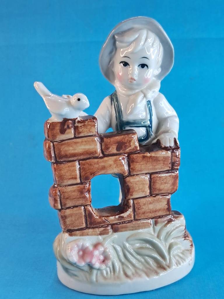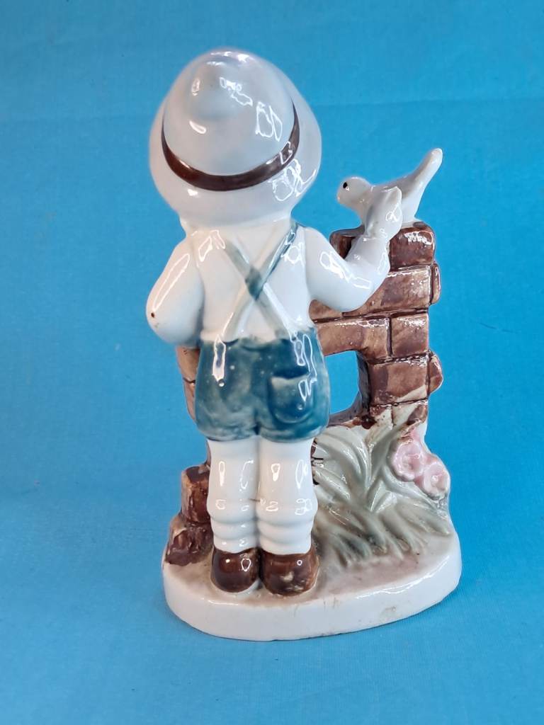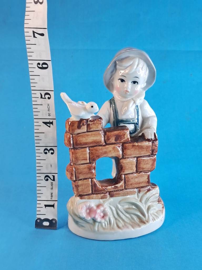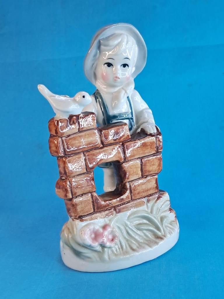 Vintage 6-inch Child & Bird Figurine Porcelain Handmade Decor Holland.