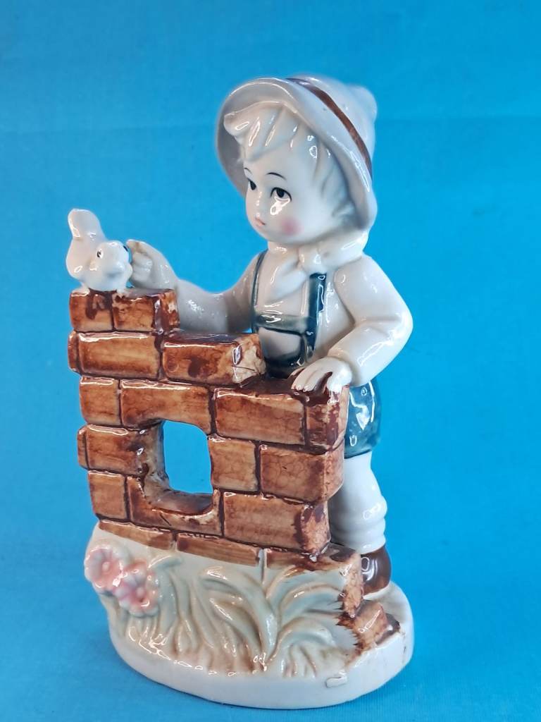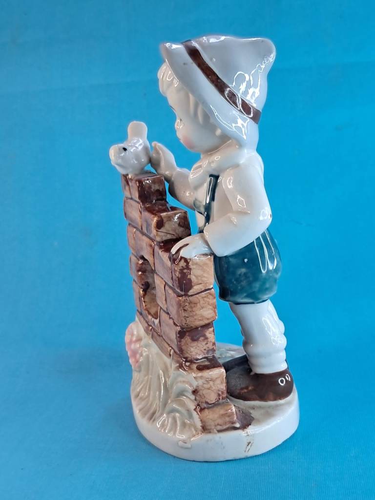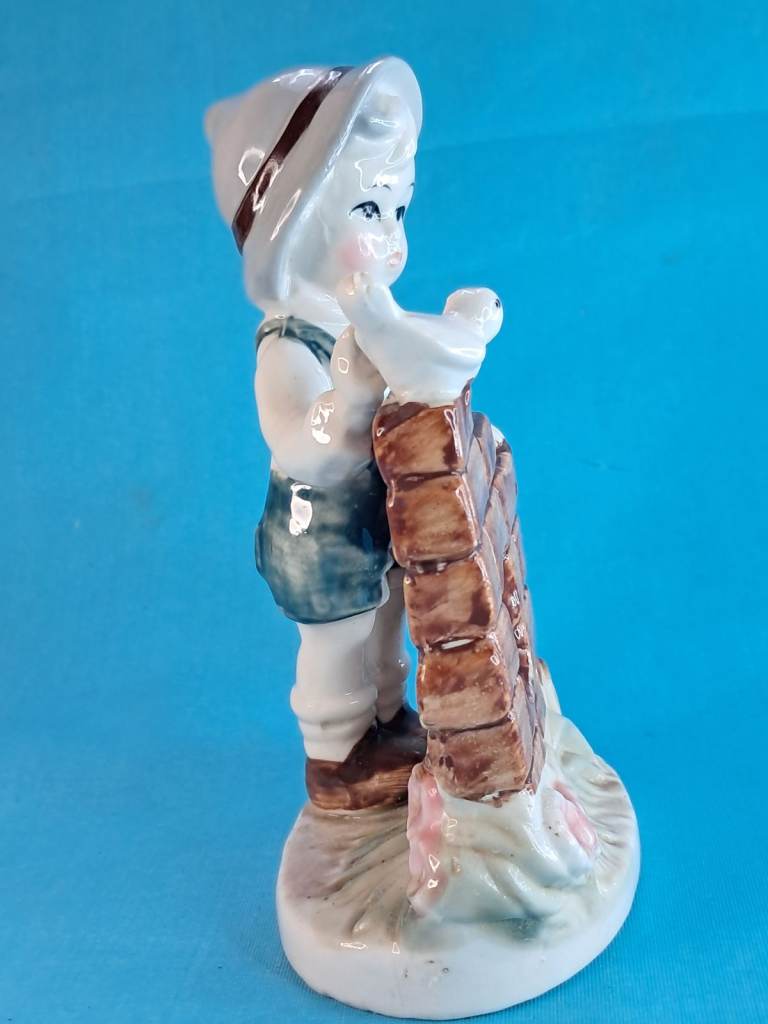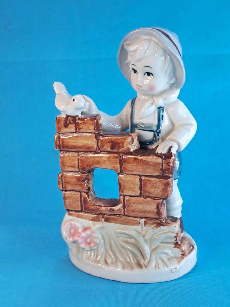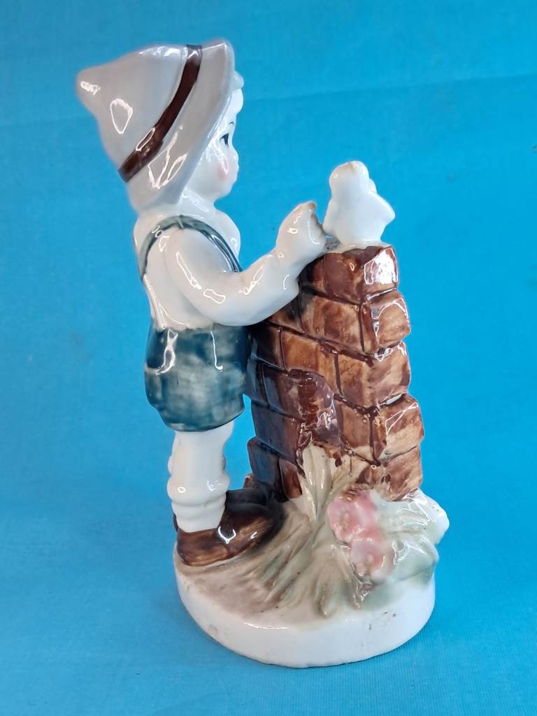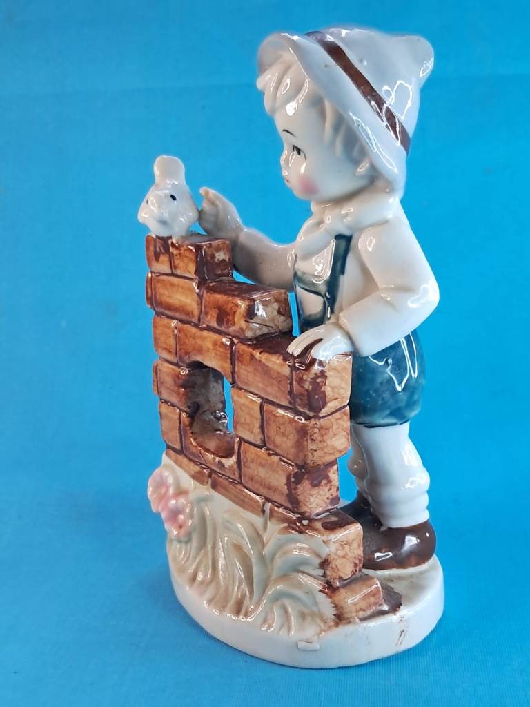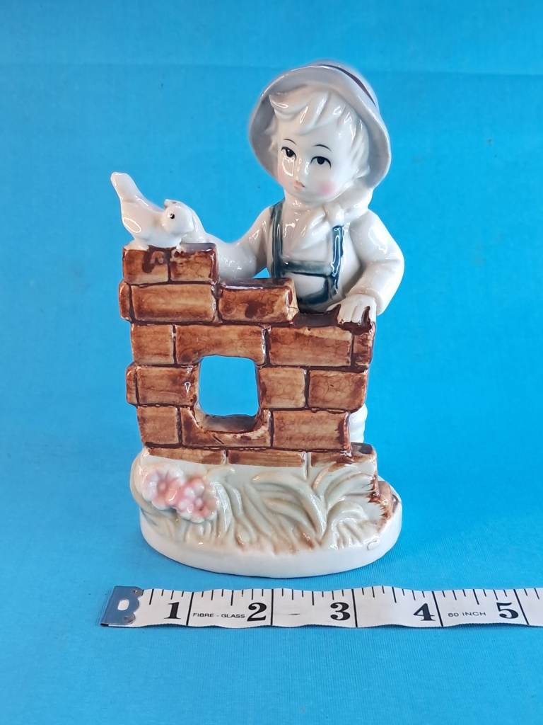 Vintage 6-inch Child & Bird Figurine Porcelain Handmade Decor Holland.