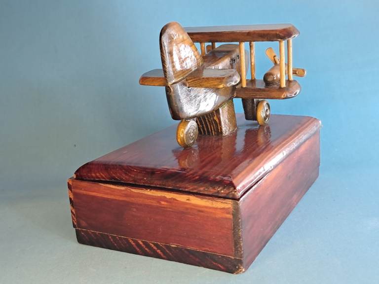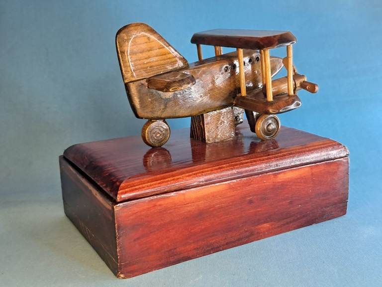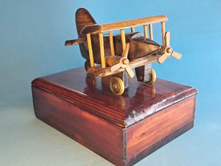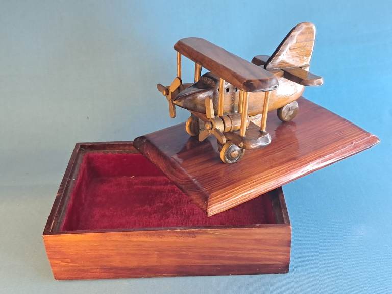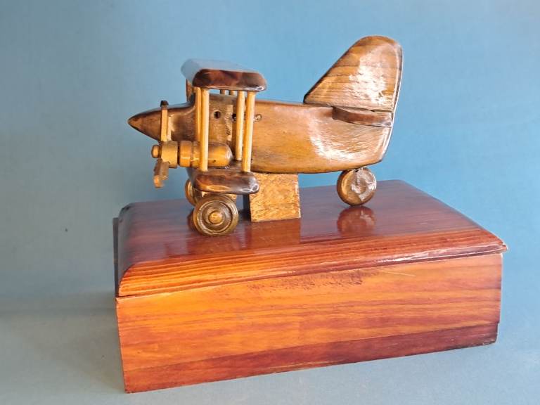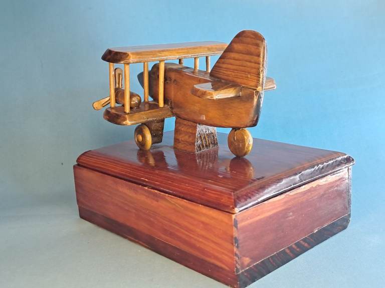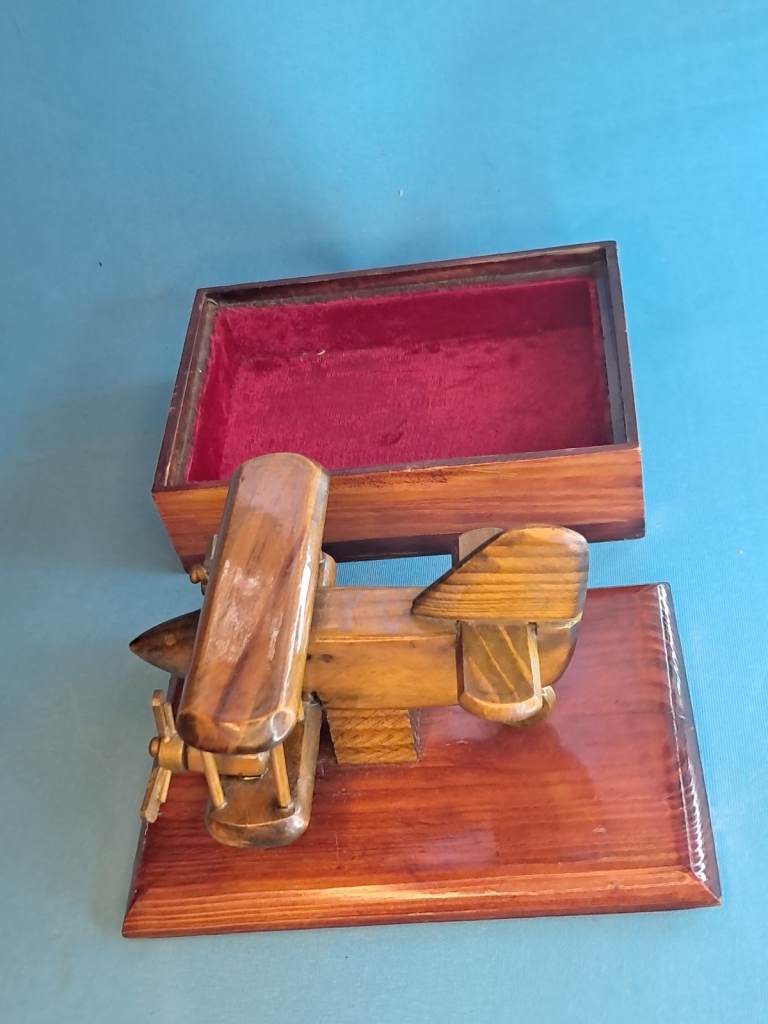 Vintage,Antique wooden Airplane handcrafted box.Secret box.Measurements on my pictures