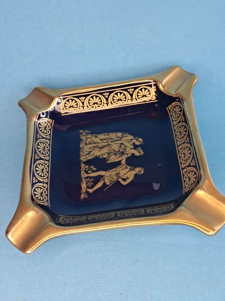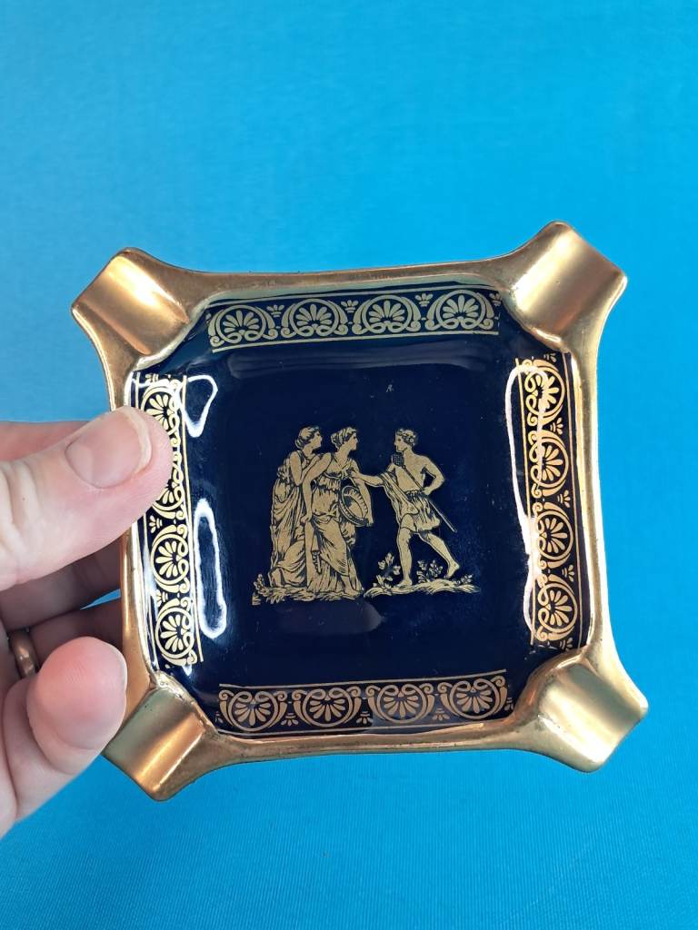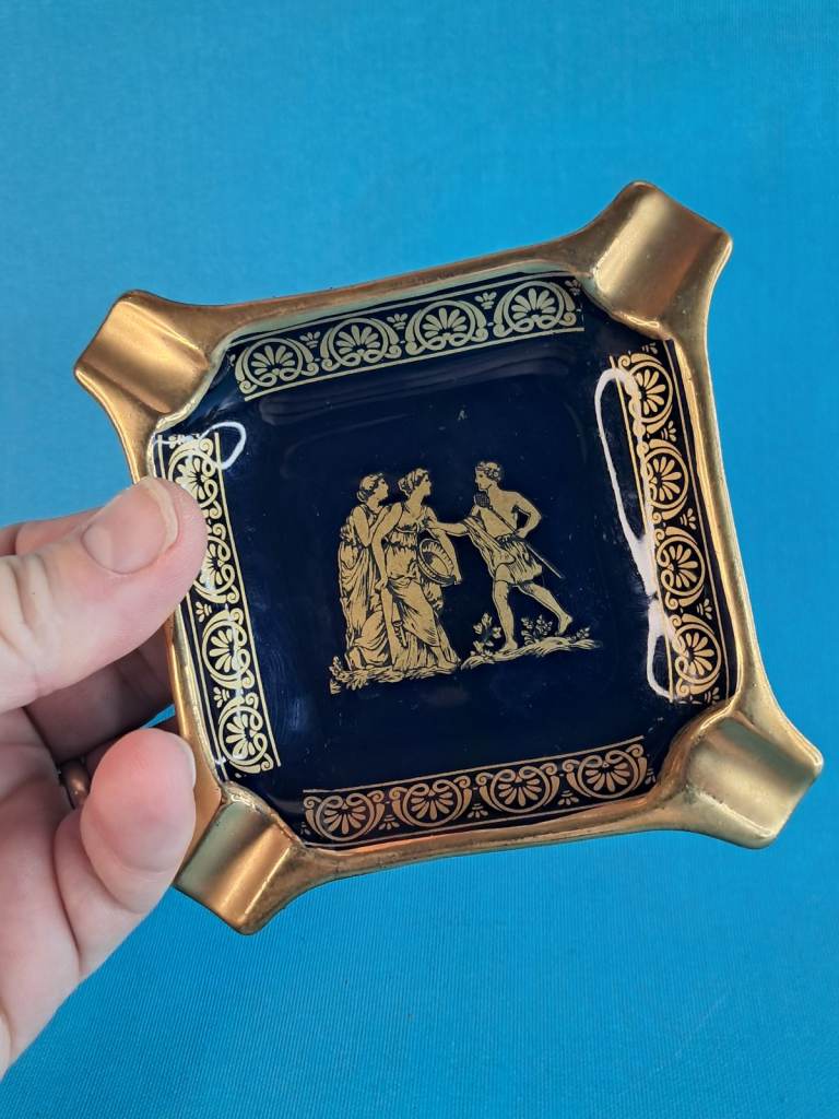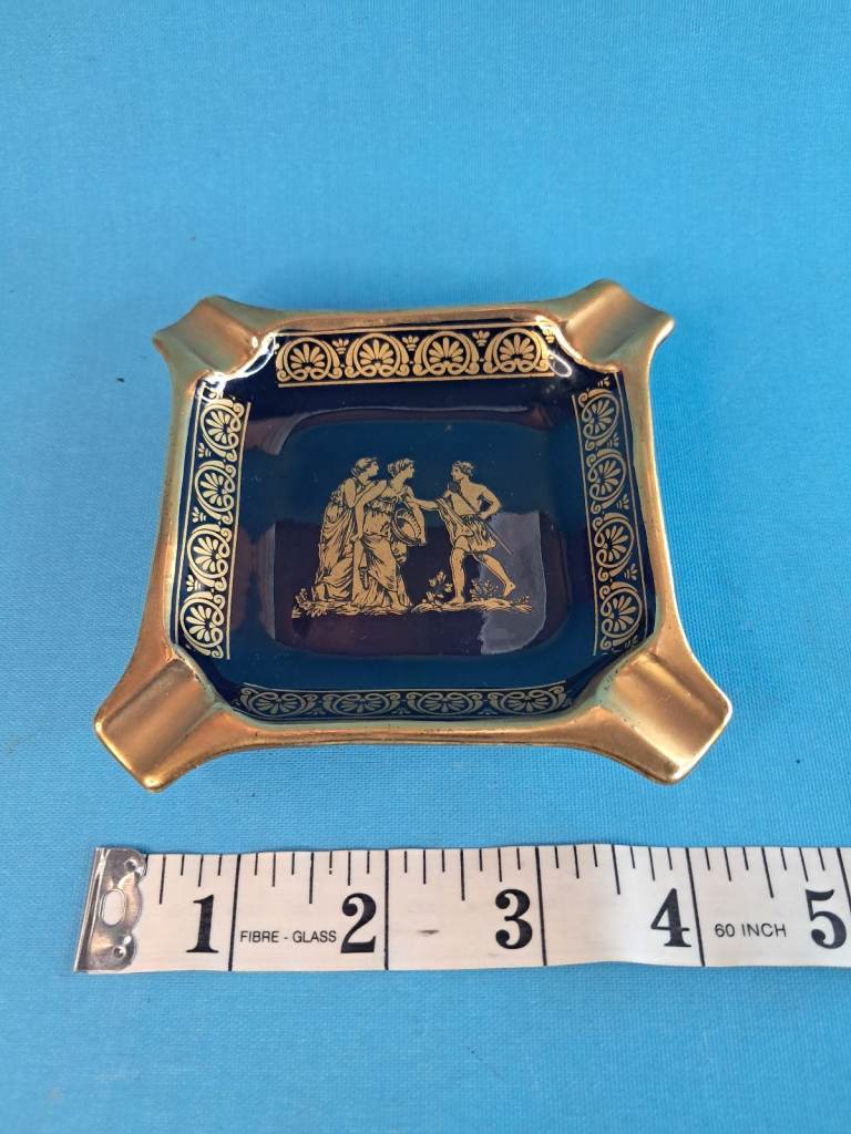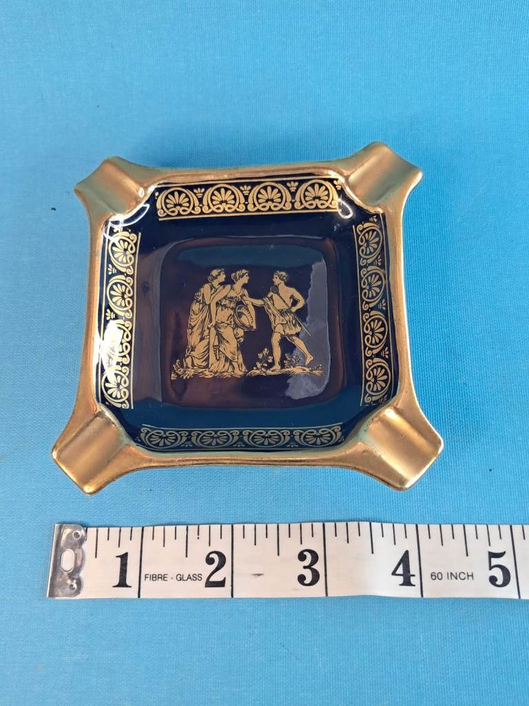 Vintage Ashtray Dish Neofitou Keramik Handmade Made In Greece 24 Kt Gold decoration. .
