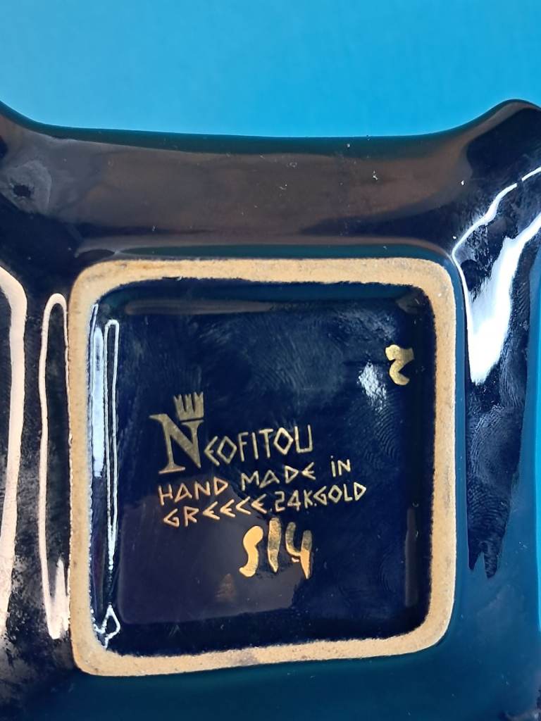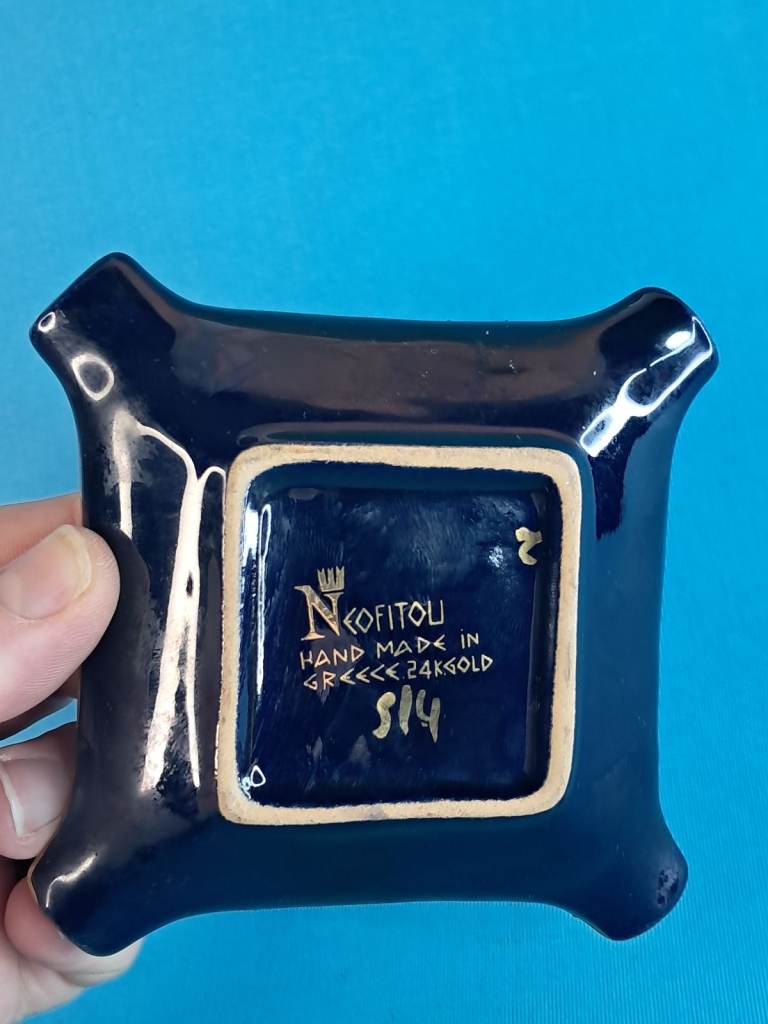Vintage Ashtray Dish Neofitou Keramik Handmade Made In Greece 24 Kt Gold decoration.