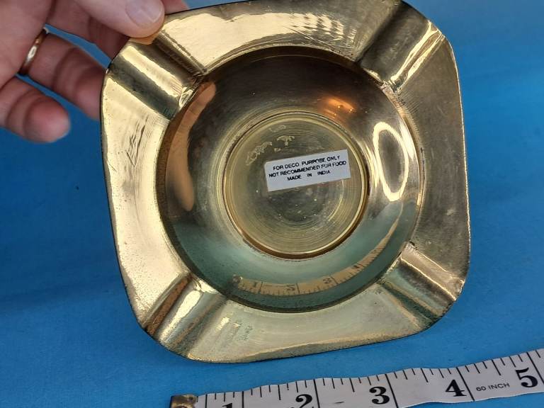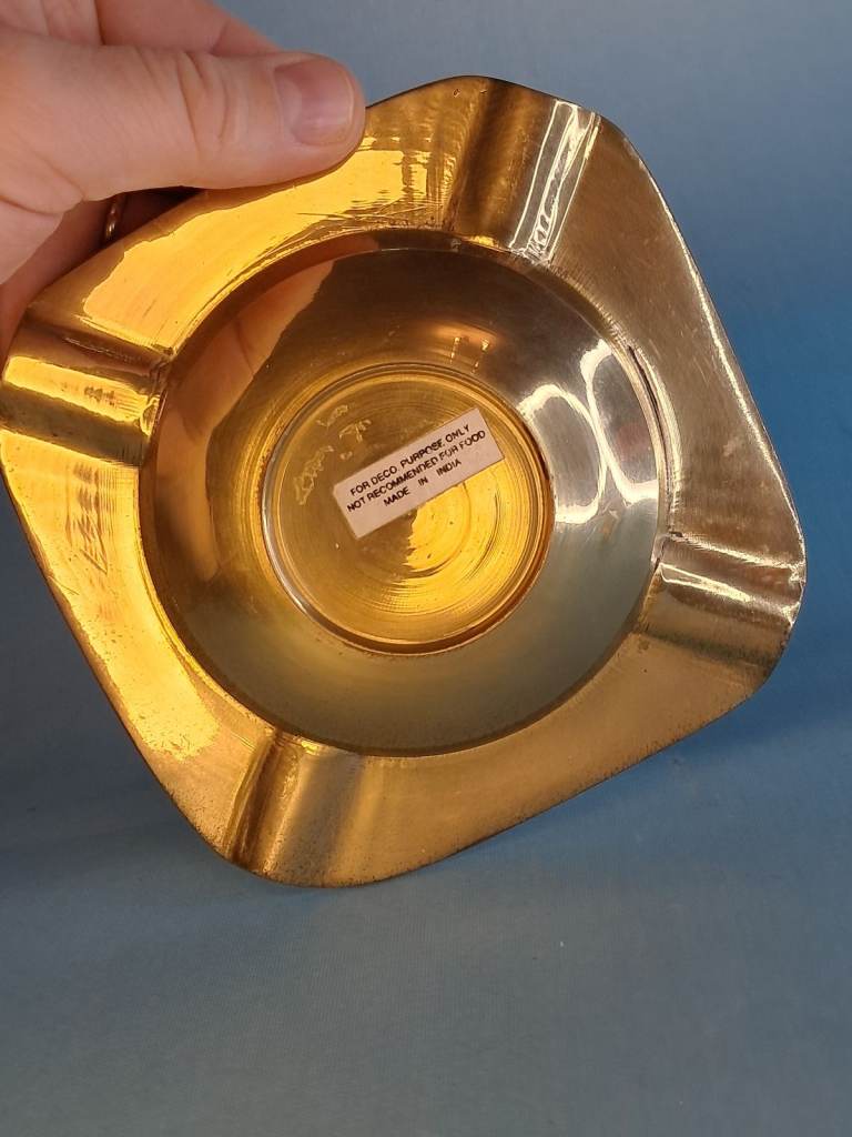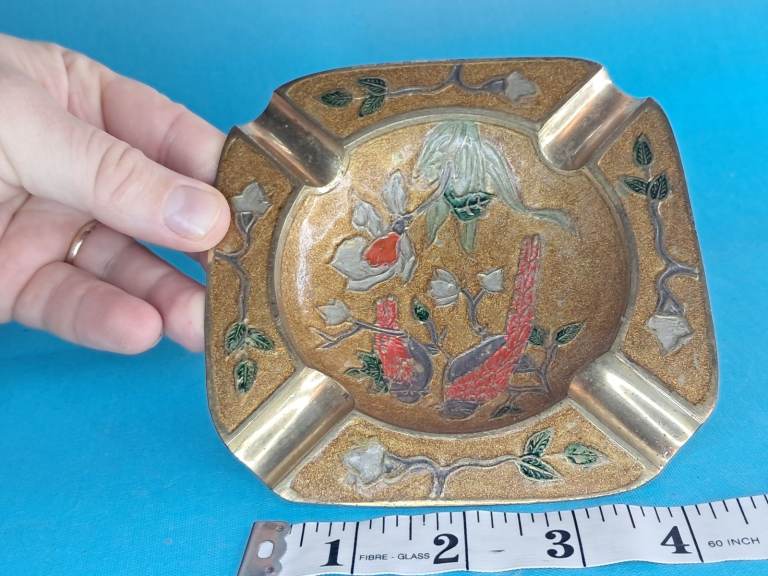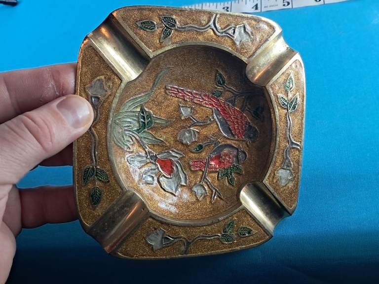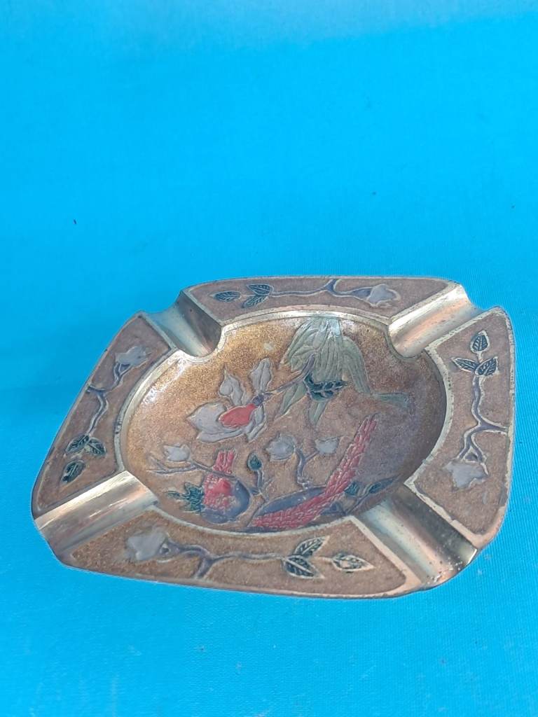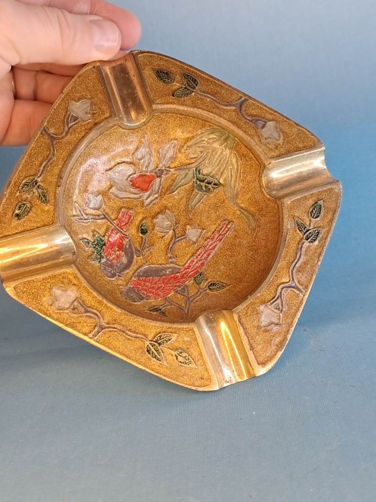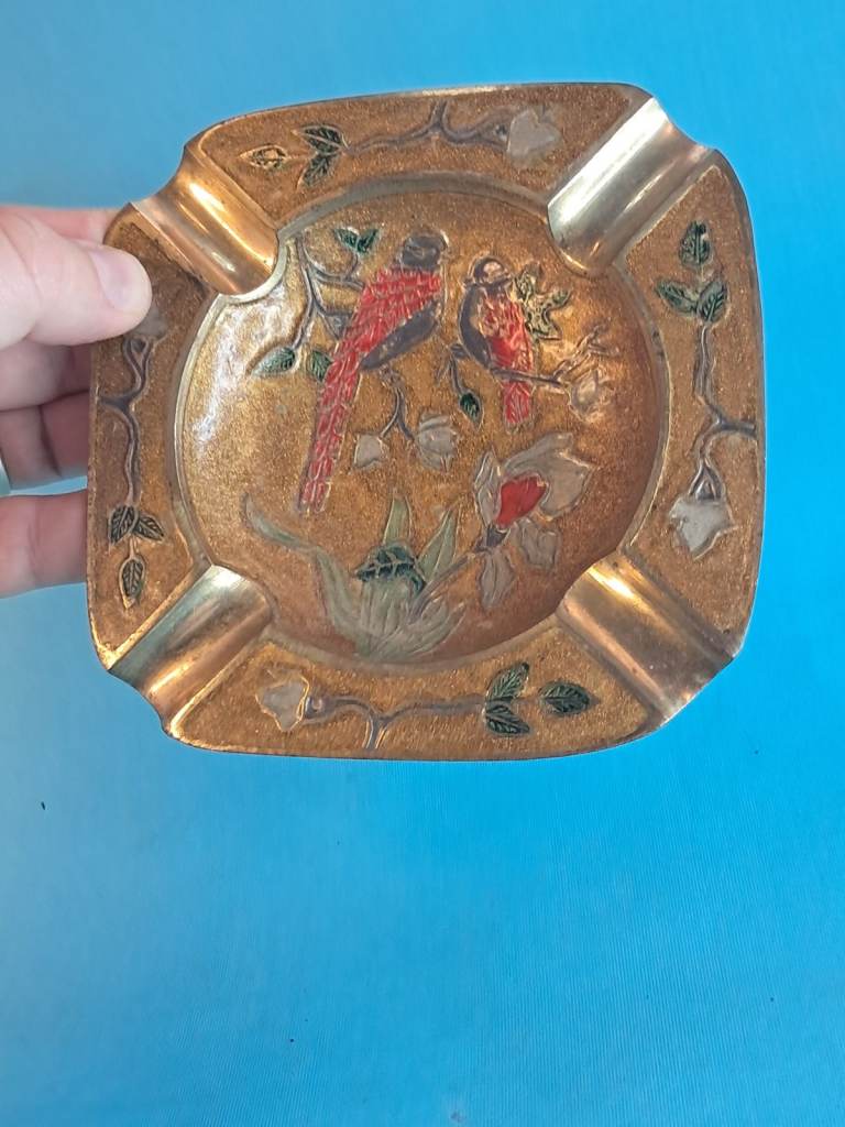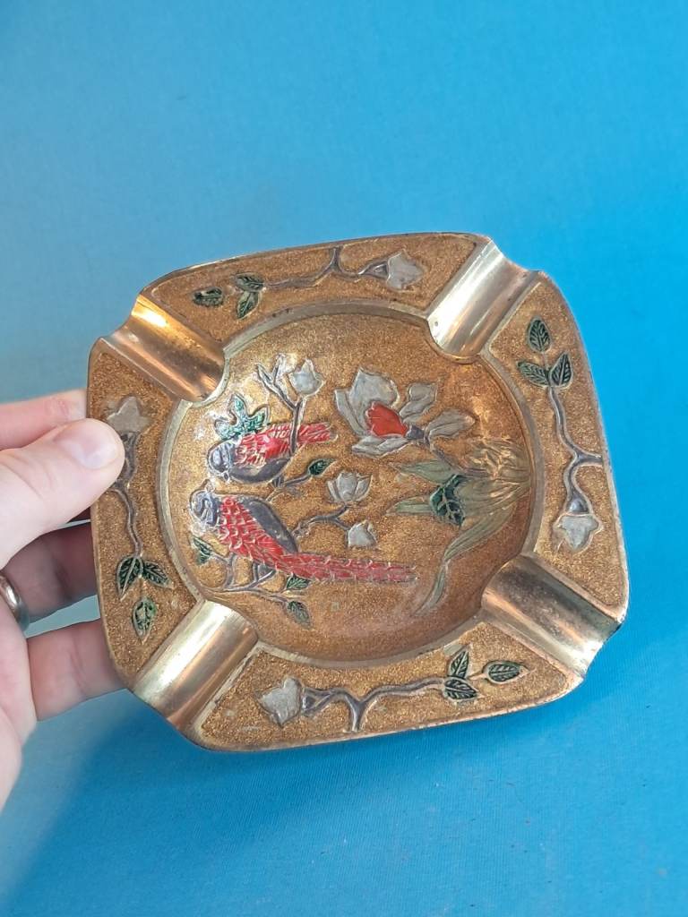 Vintage brass ashtray,from the early to mid-20th century,featuring design of birds and flowers