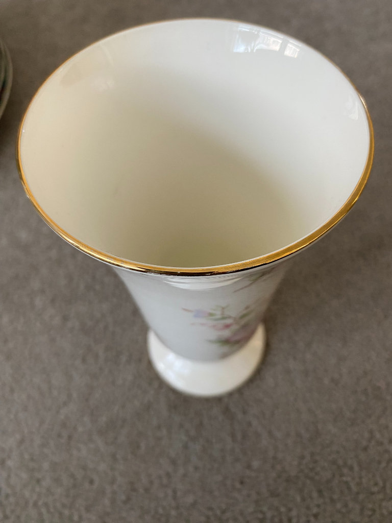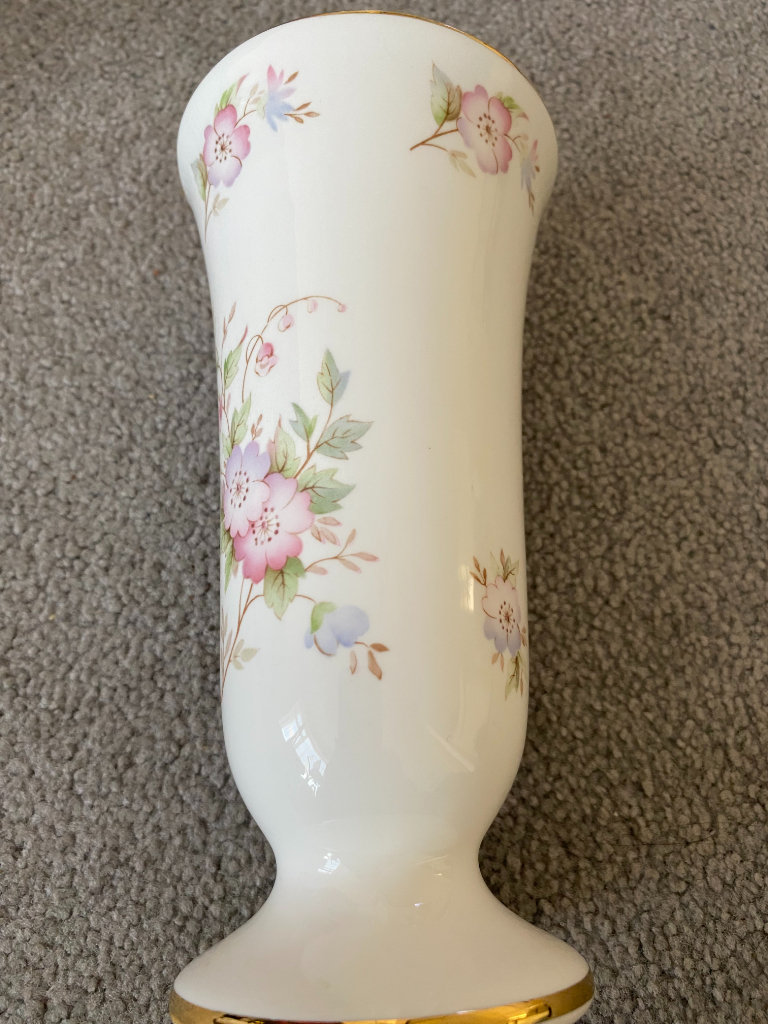 Beautiful Vintage Clematis Fine Bone China Vase. No Chips or Damage. Measures approx 7"