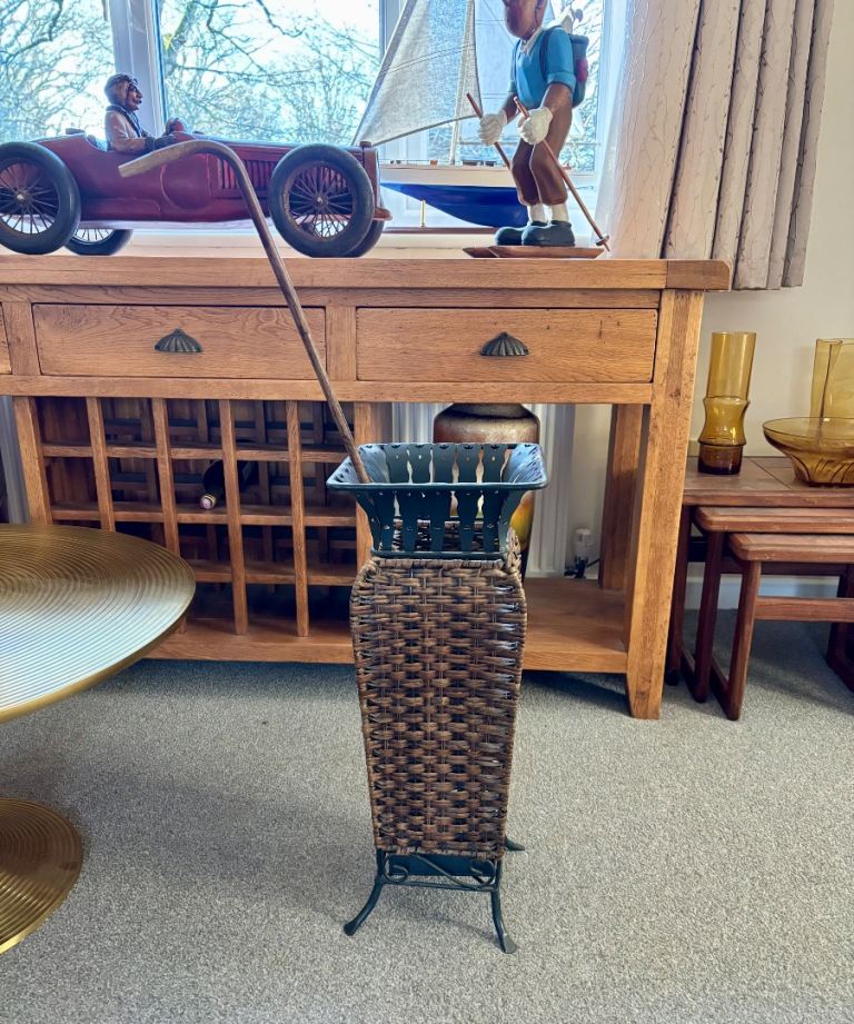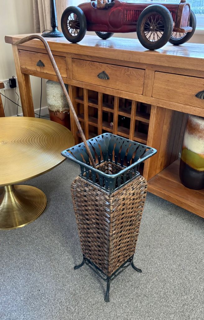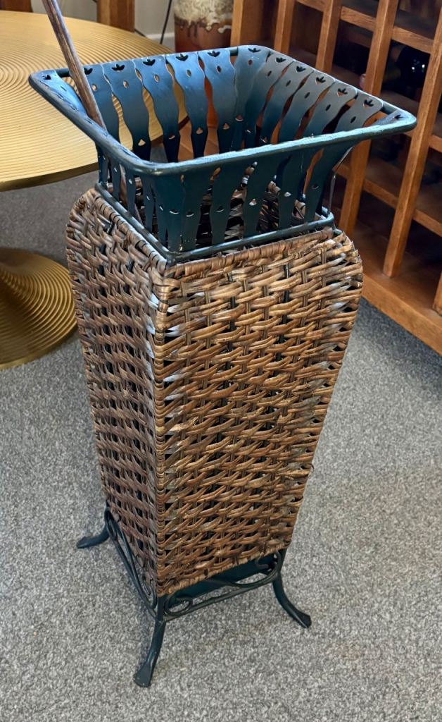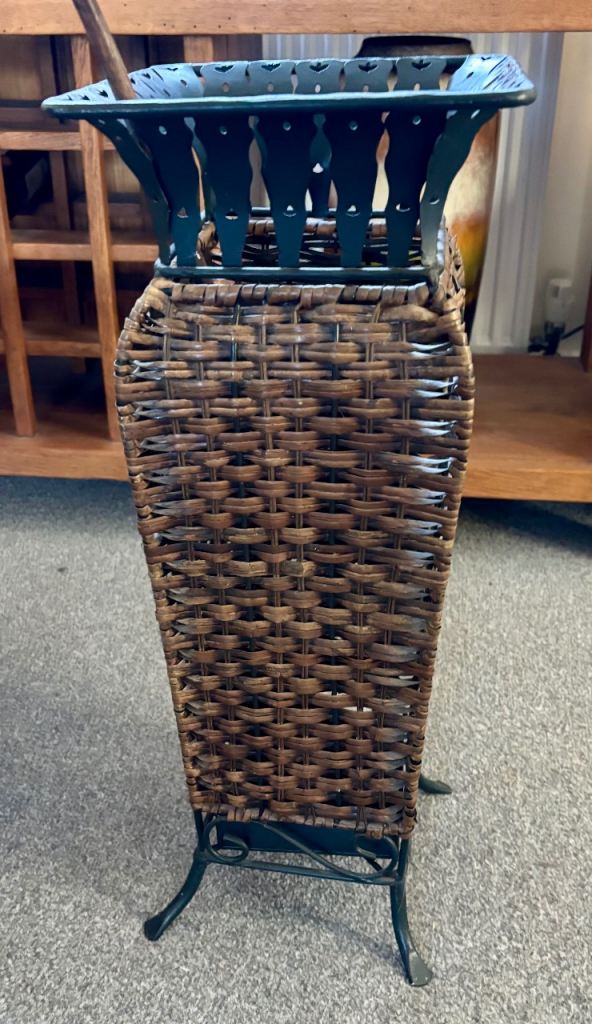 The intricate woven willow design paired with the metal base gives it a unique and vintage appeal.