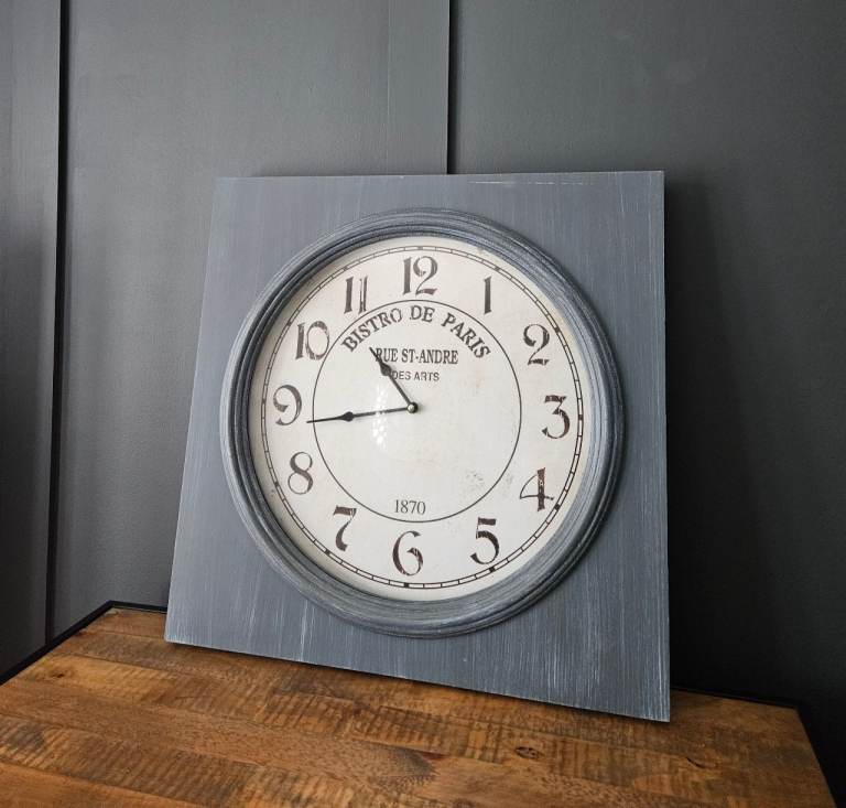 A gorgeous shabby chic Wall Clock in rustic grey 60cm ➡️⬇️