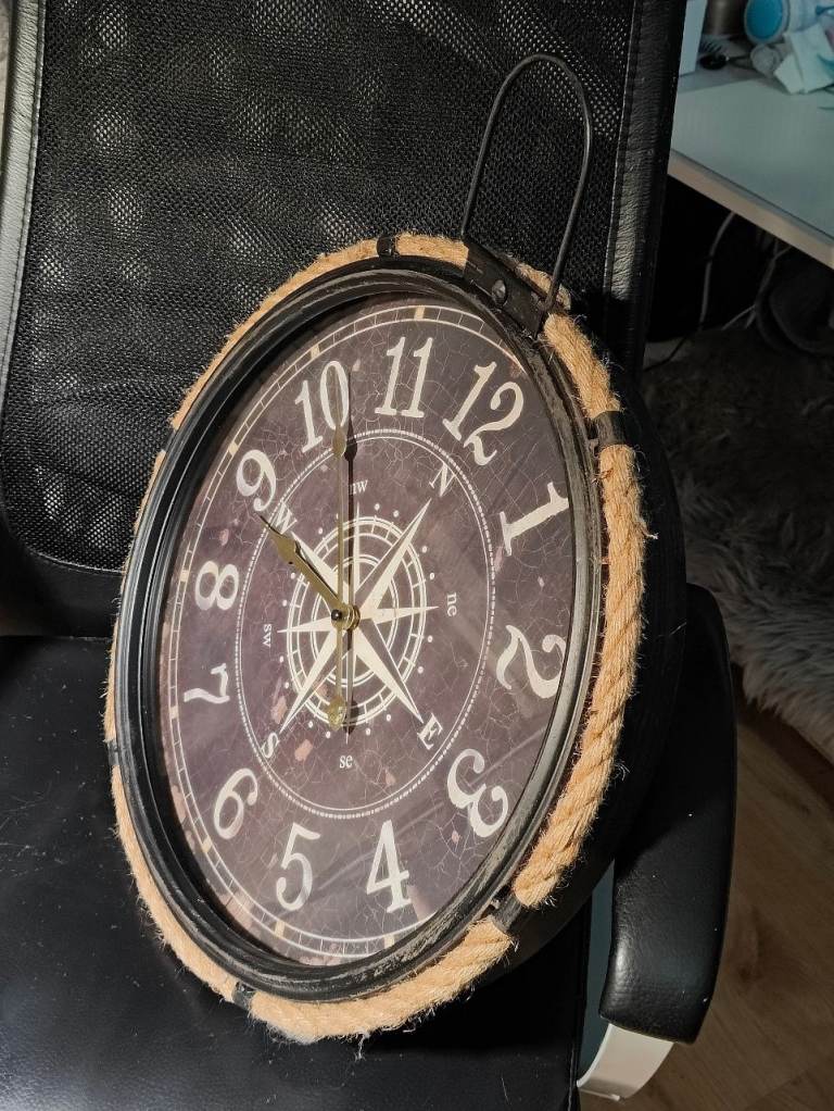 Nice decorative wall clock with a vintage nautical design and rope detail.