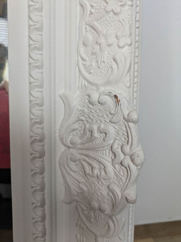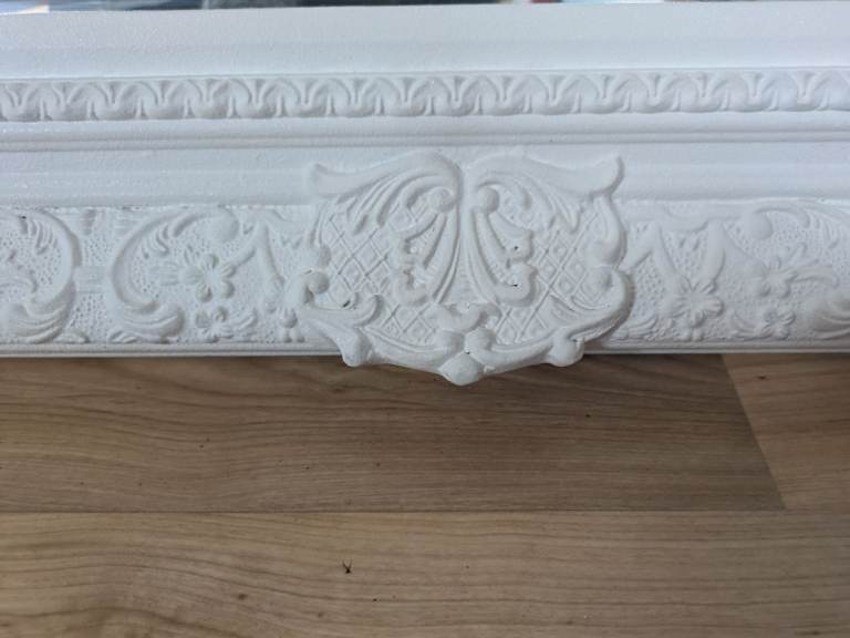 Beautiful John Lewis white baroque style mirror with bevelled glass