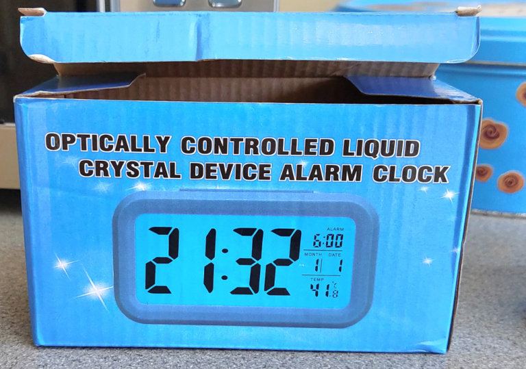 Optically controlled led liquid crystal device alarm clock.