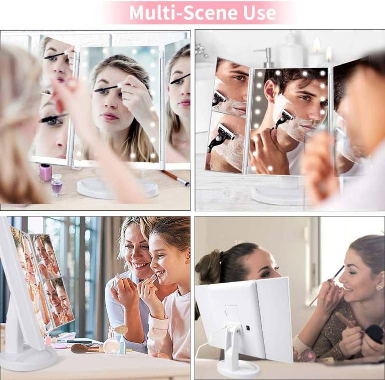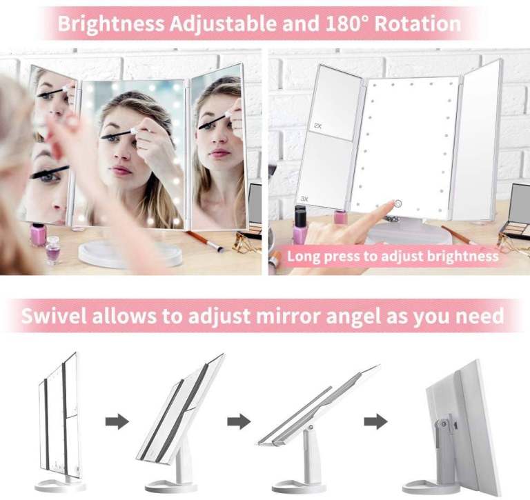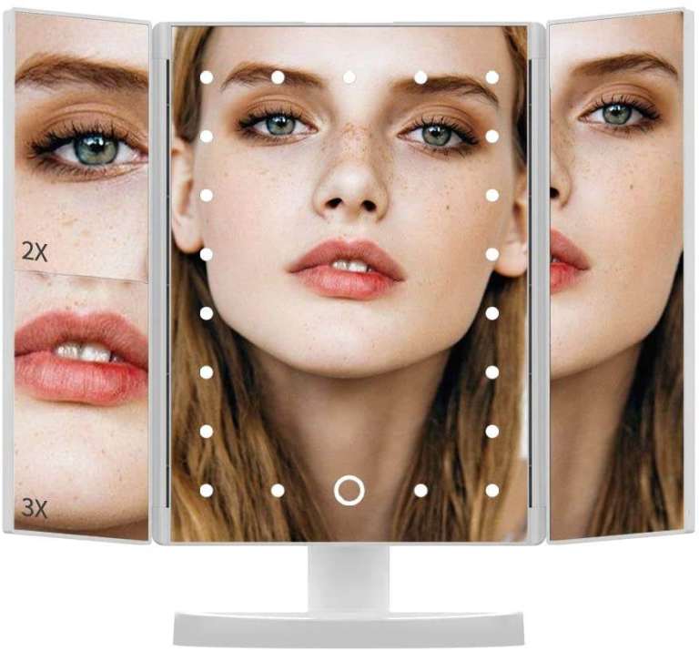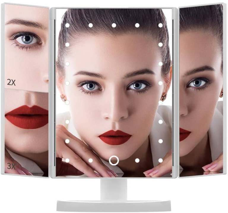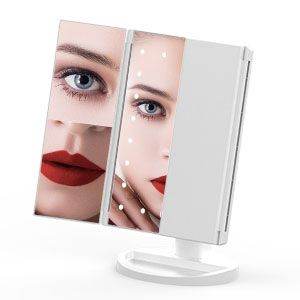 White LED Tri-Fold Makeup Mirror 21 Pcs LED with Touch Dimmer Switch