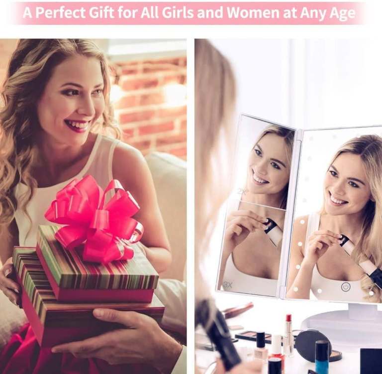BNIB (Still Sealed) DIOZO Makeup Mirror, 21pcs LED Lighted Vanity Mirror Tri-fold 1X/2X/3X Magnification Cosmetic Mirror with Touch Dimmer Switch, Battery and USB Powered (White)