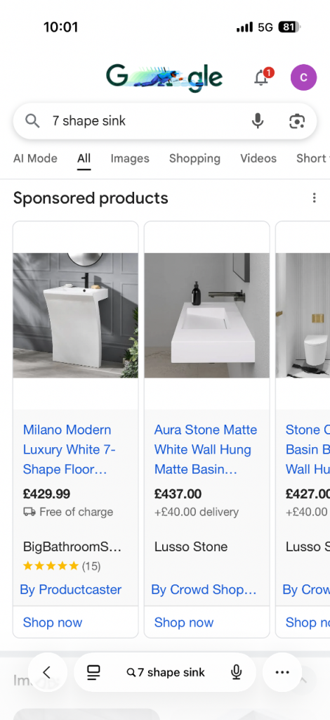 White sink figure 7 shape