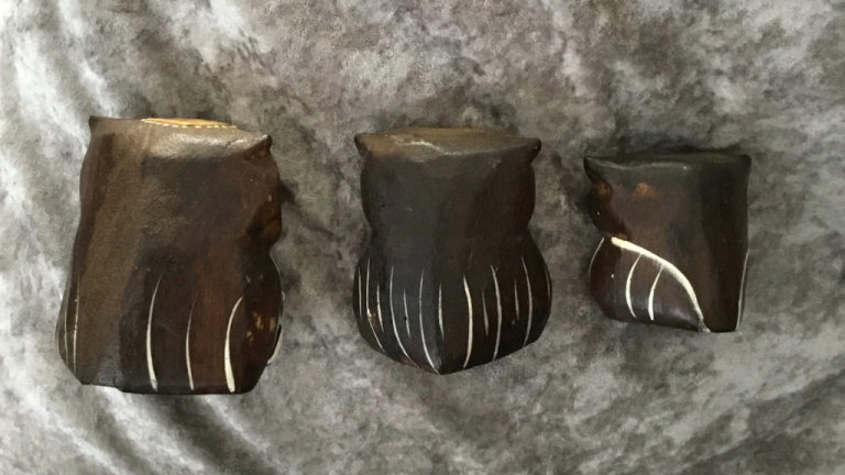 Wooden Ornaments: Three Owls (Dark/Mid-Brown) Shabby Chic