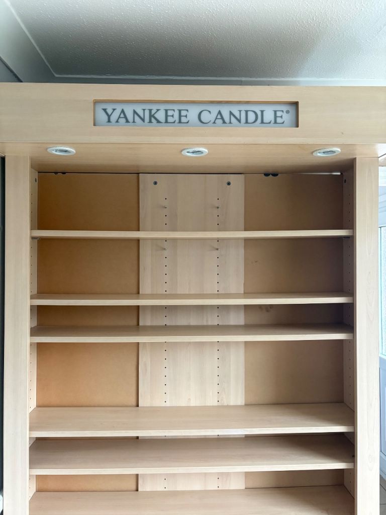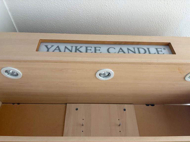 Yankee candle unit got a slight big off paint on the front (shown in photo) the Yankee part lights up, cupboard underneath still in good condition nothing wrong with it apart from the little bit off paint
