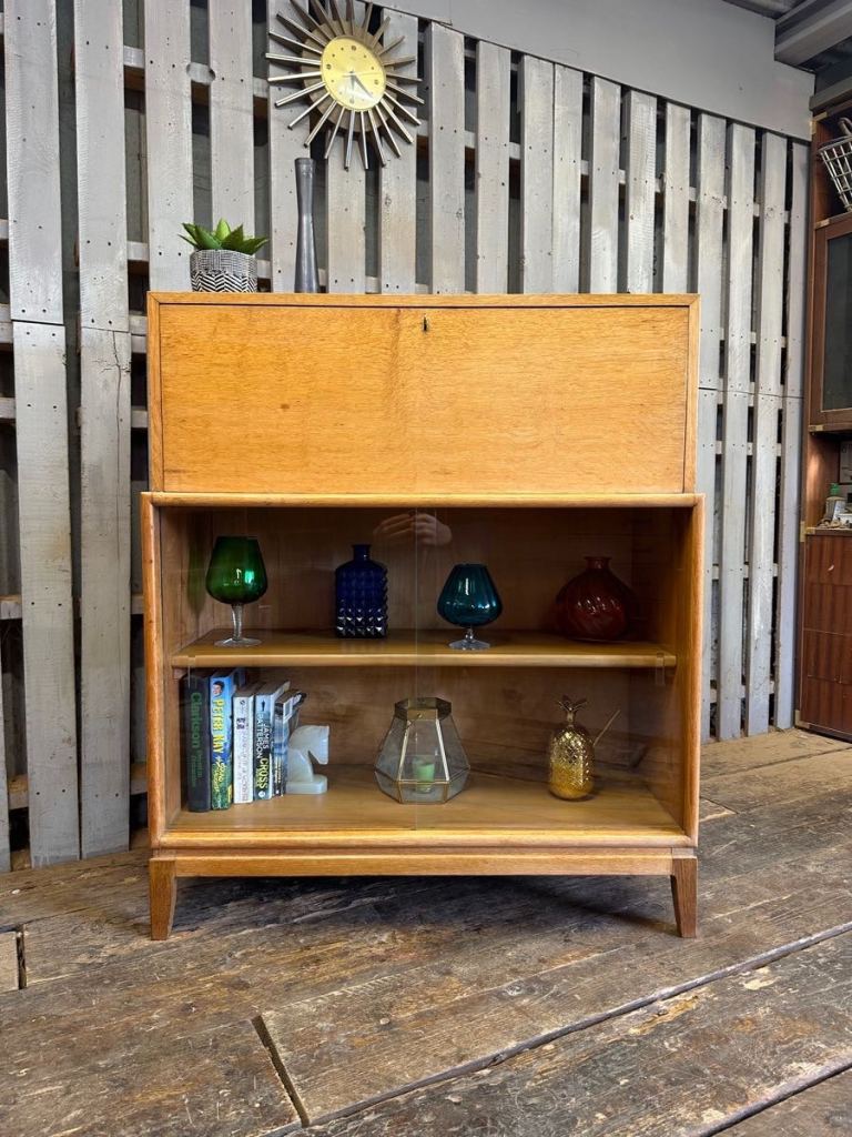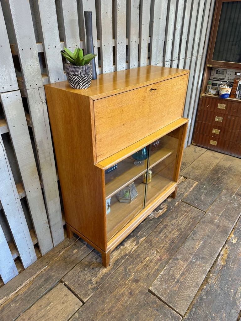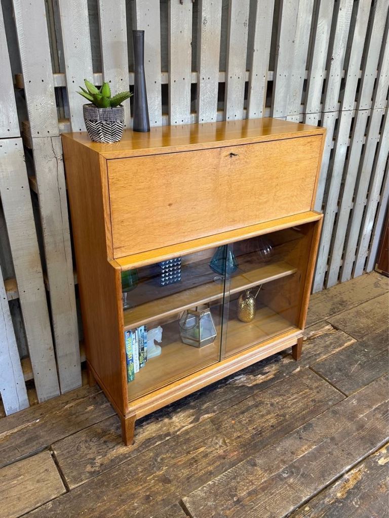 1960s oak bureau bookcase vintage retro mid century