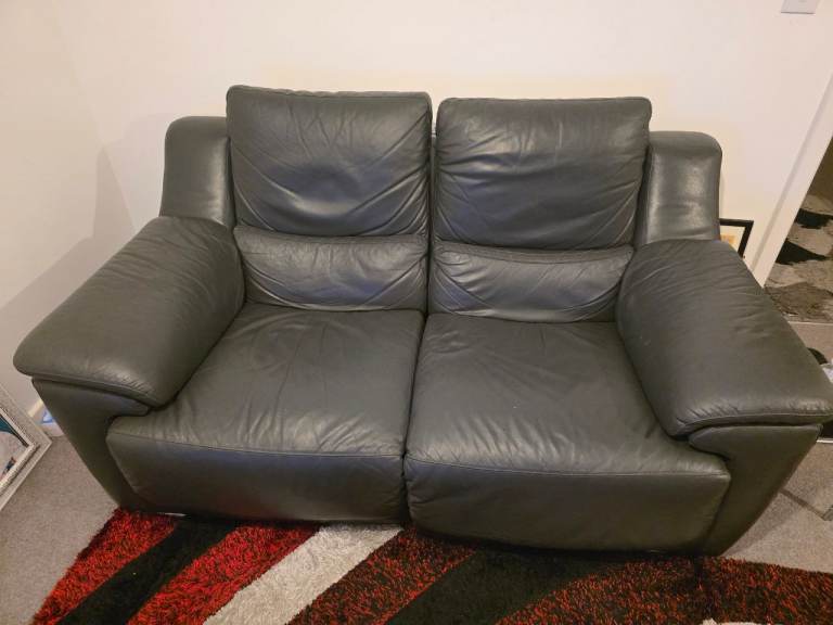 Good condition grey leather sofa set, two-seater and one-seater included.