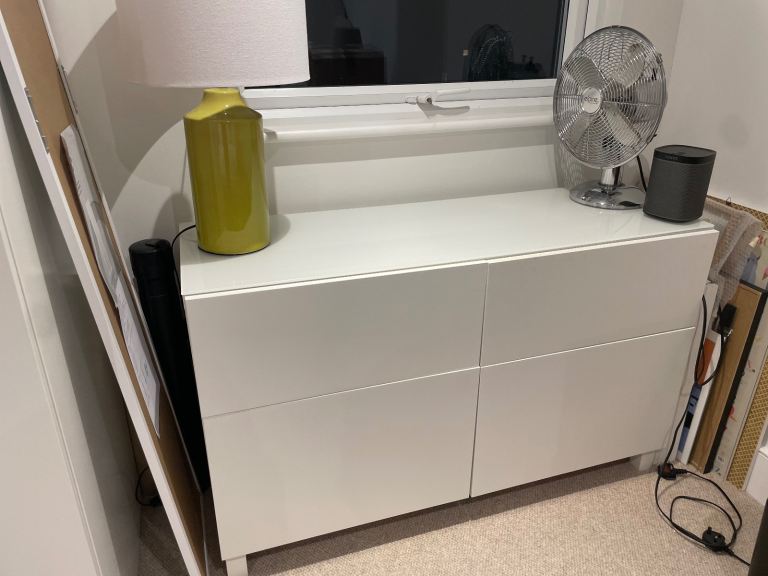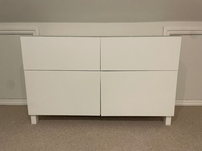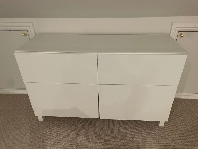 2 x ikea white sideboards glass top