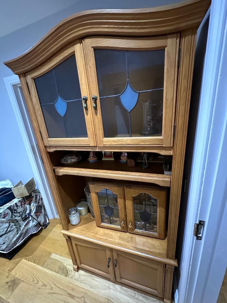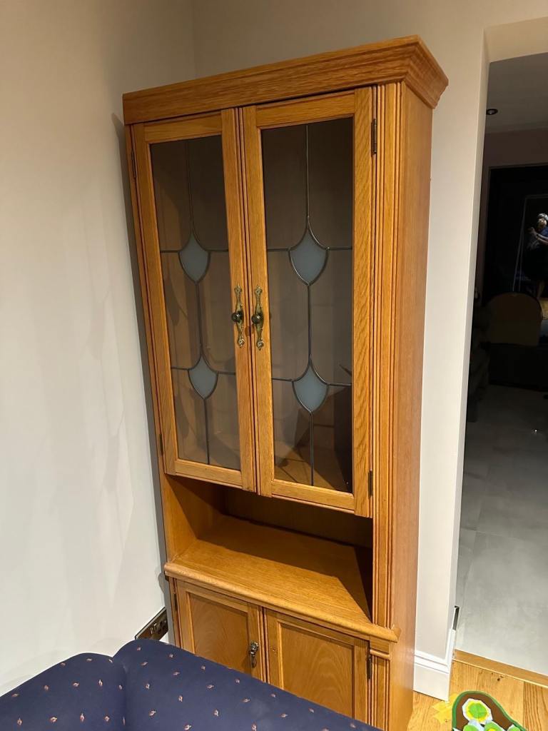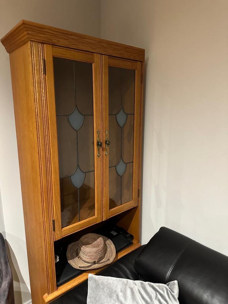 Posting for under a month3 Piece Wall Unit in Beautiful Oak with Stained Glass and Lighting