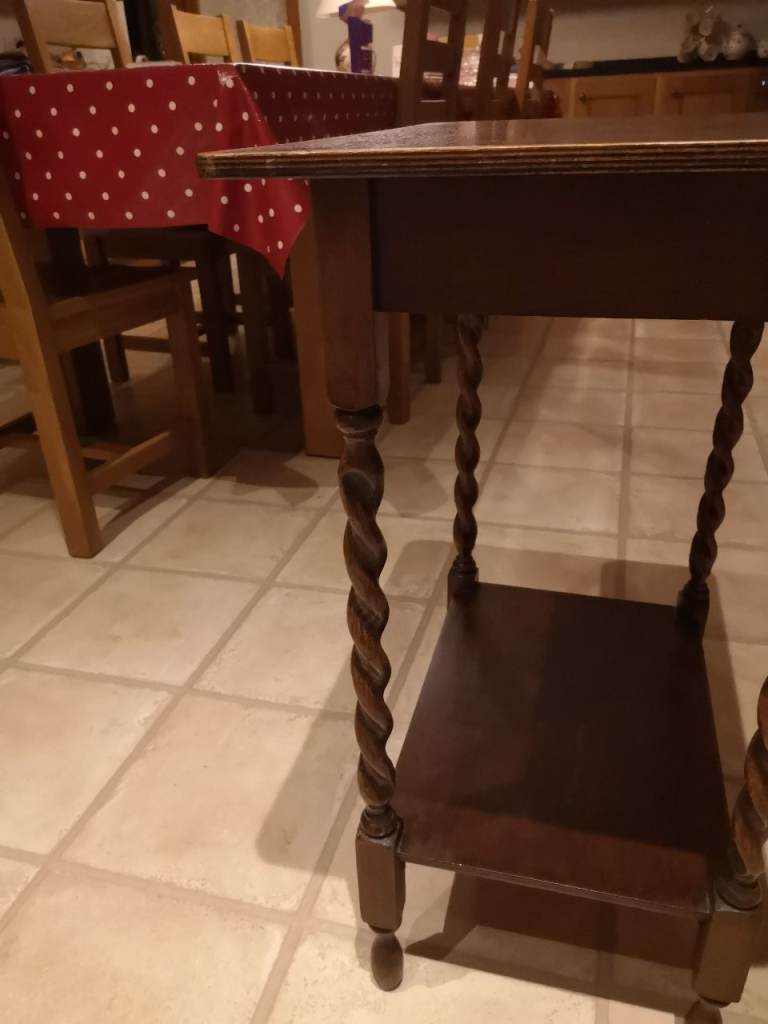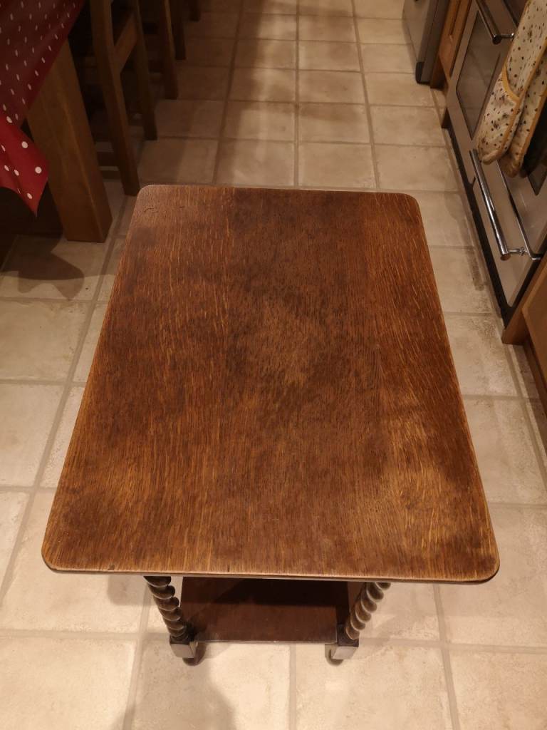 Lovely antique table with attractive twisted legs. The top is a bit marked but I had this in my lounge and it didn't bother me.