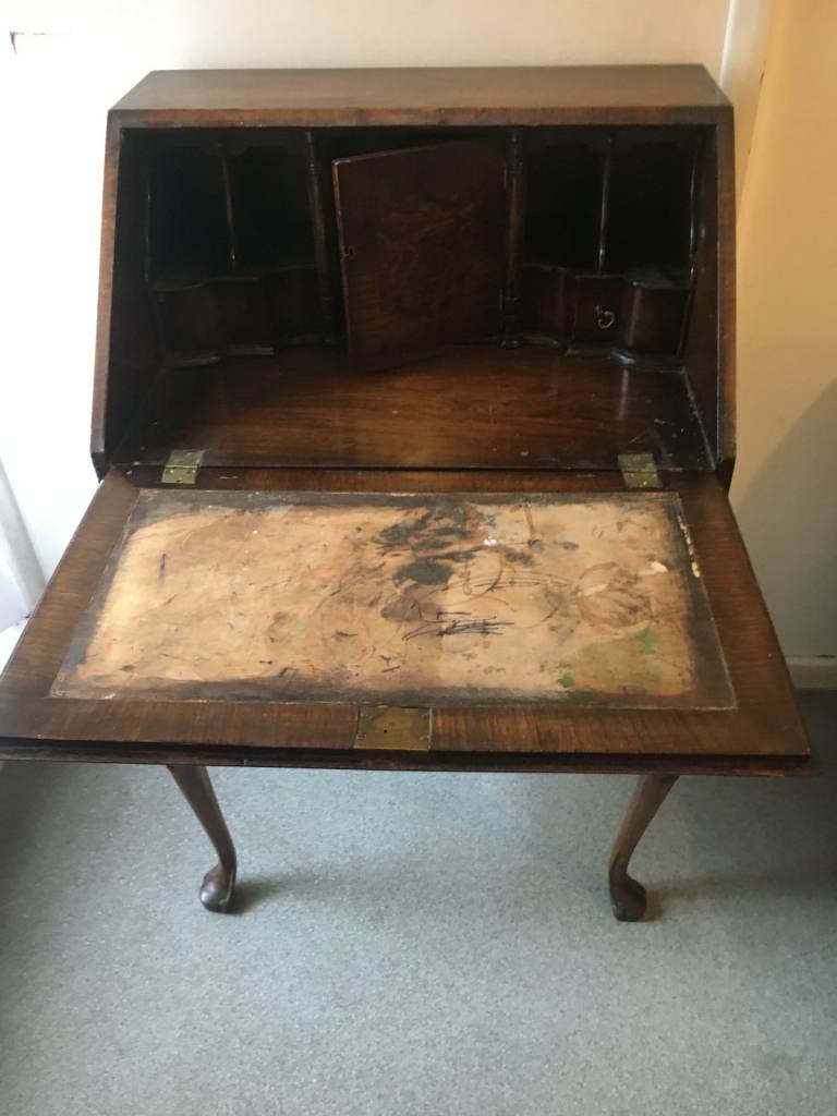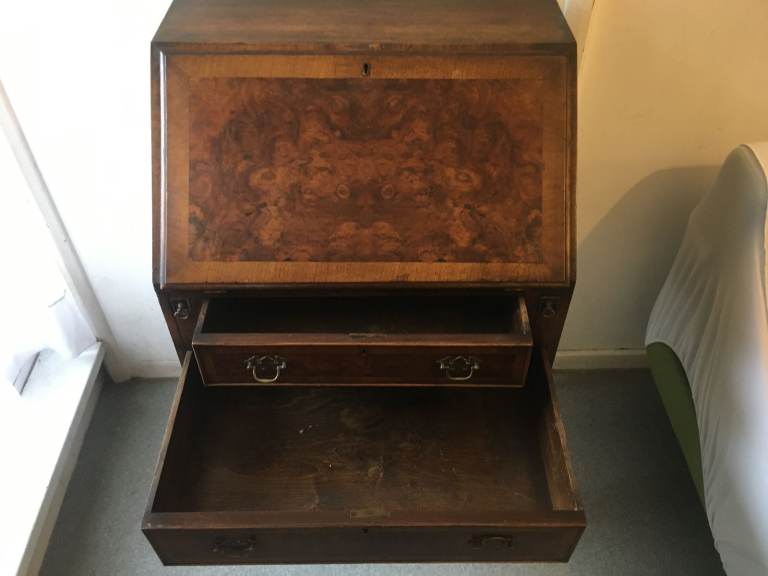 Posting for 18+ yearsAntique Queen Anne Walnut Ladies Writing Bureau 1930's Secretaire 2 Drawers with Cabriole Supports