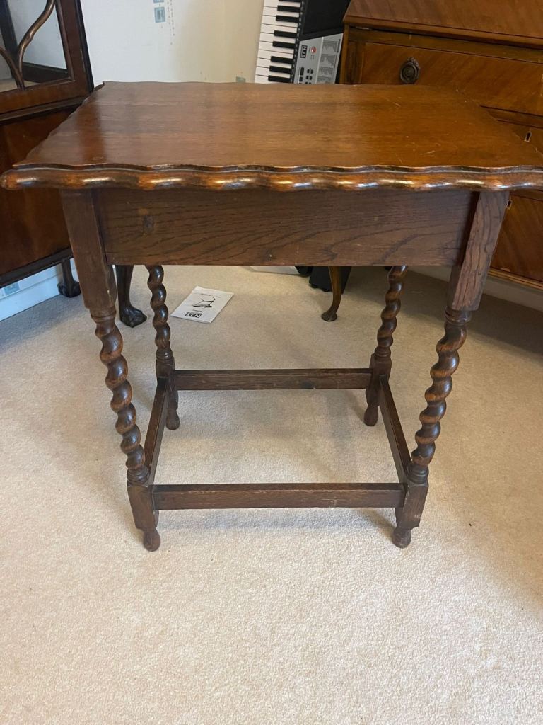 Posting for 13+ yearsAntique Solid Oak Barley Twist Leg Side Table: