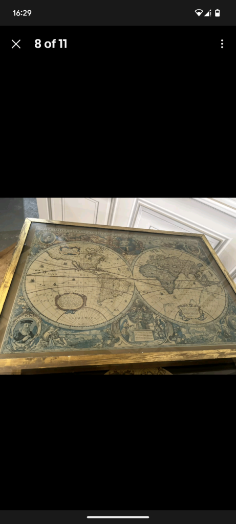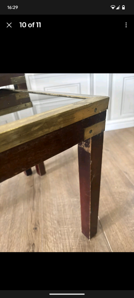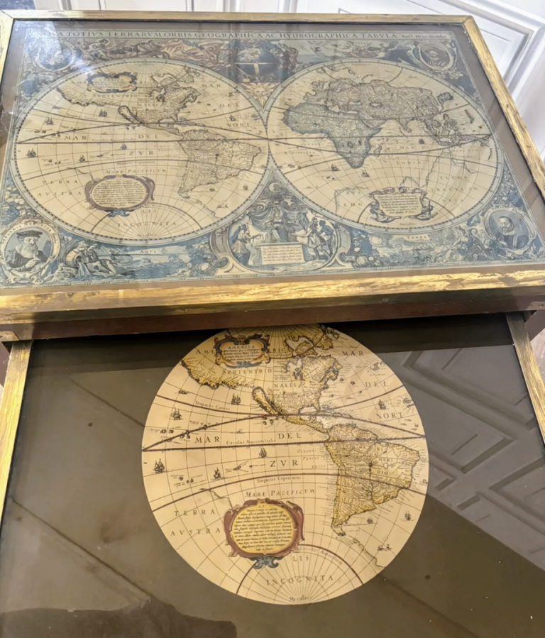 Antique Vintage Glass Top nest of table Brass and solid wood World Map