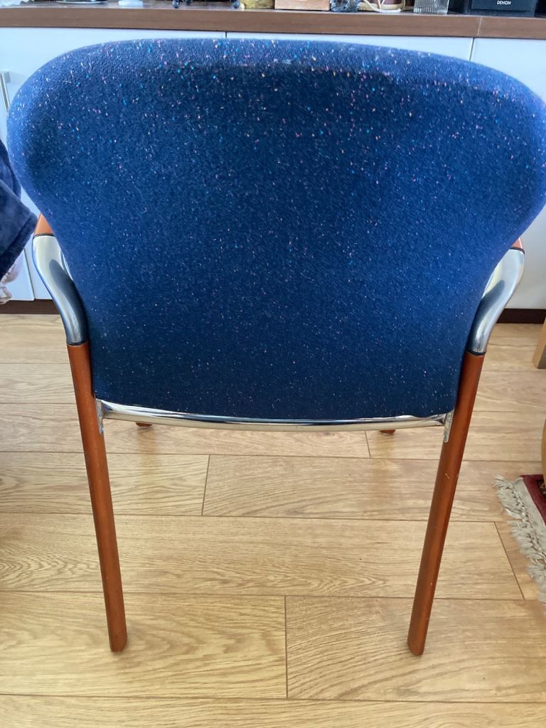 • Upholstered in dark blue speckled fabric with a subtle texture