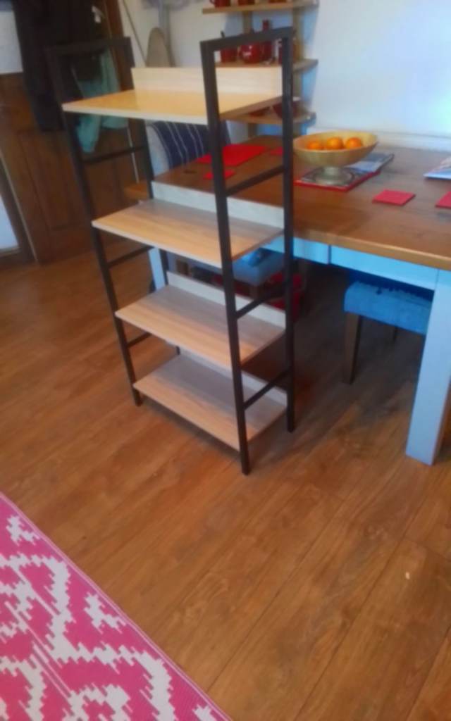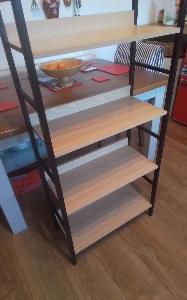 A lovely modern good quality shelving stand in excellent condition from a smoke and pet free home, standing on a black metal frame with 4 spacious wooden shelves, and measuring 125cm tall x 60cm wide x 28cm deep, a very stylish quality item that looks good in any room, cash on collection from Wigan please or may be able to deliver for cost of fuel only thank you.
