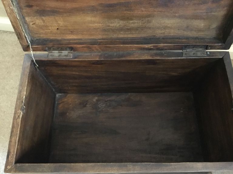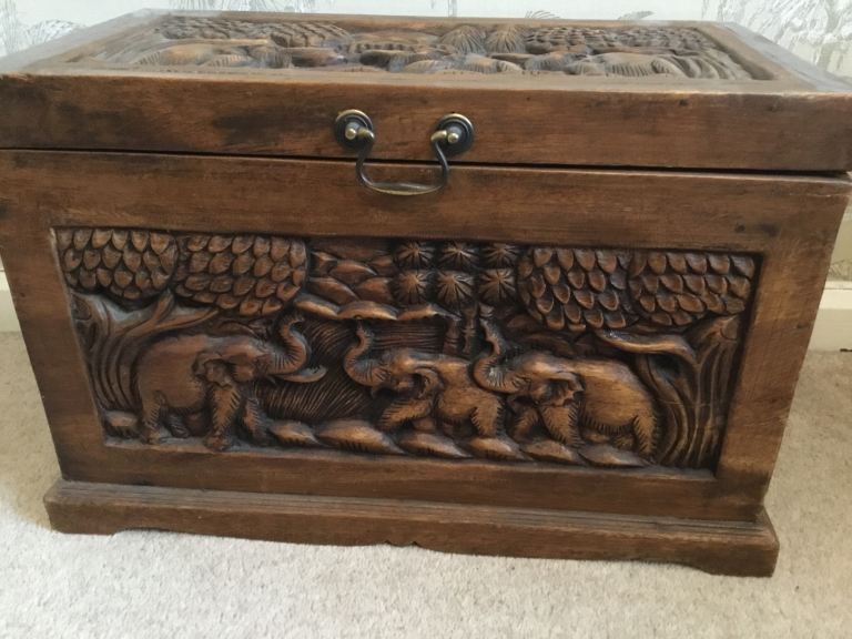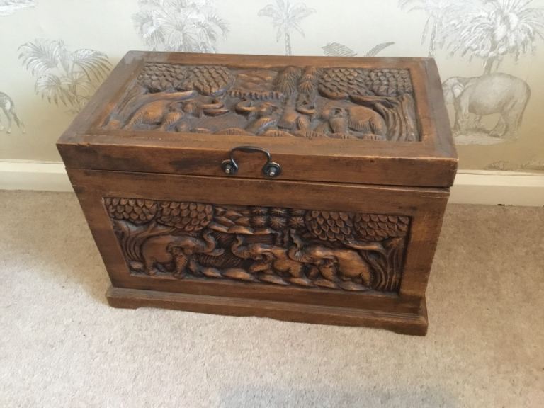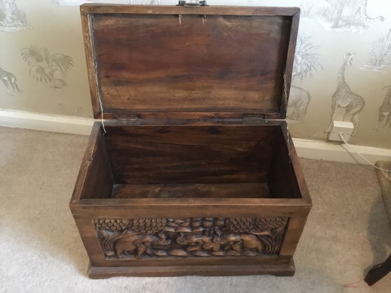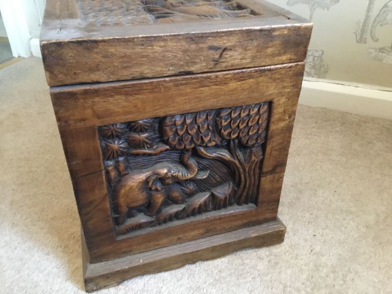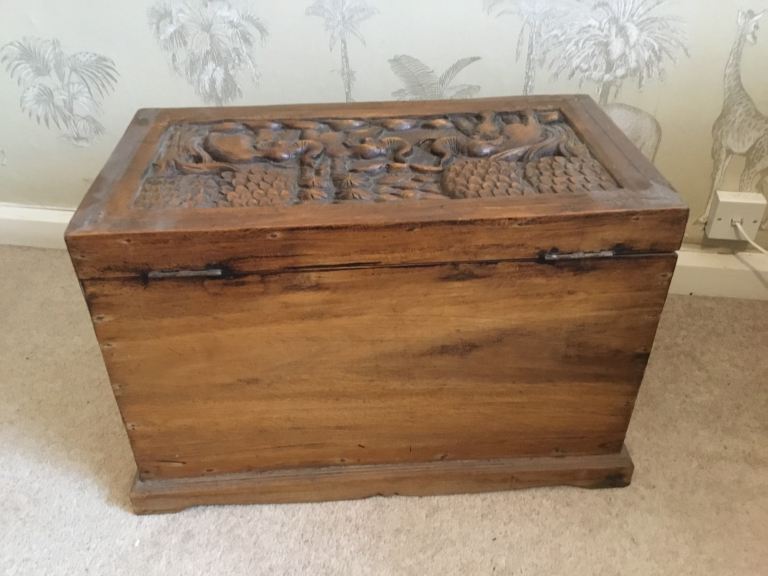 Posting for 11+ yearsBeautifully carved small wooden blanket box/coffee table/side table/TV stand
