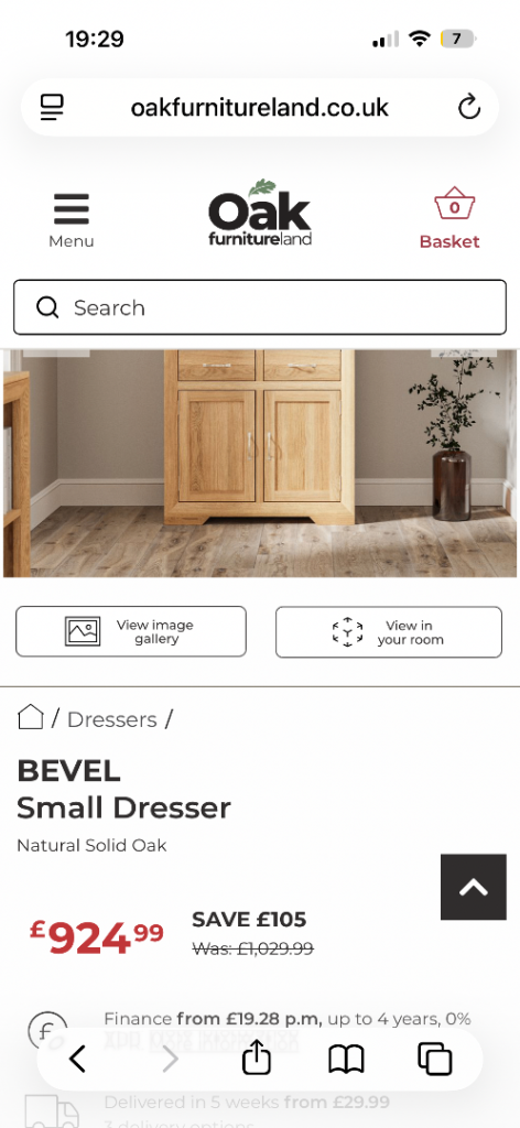 BEVEL Small Dresser Natural Solid Oak From oak furniture land RRP £924 possible Delivery 90 cm w 40 d 193 cm h