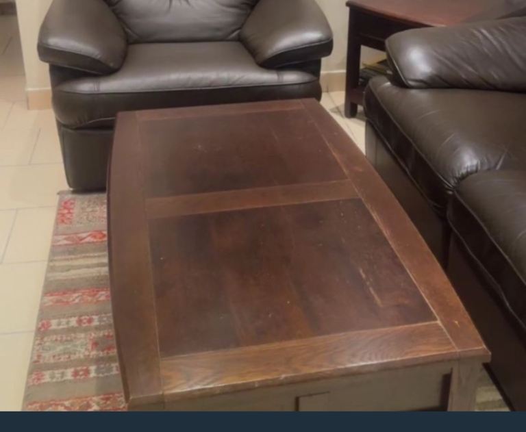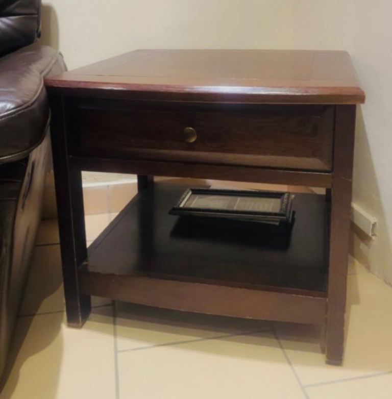 Posting for 8+ monthsBrown, solid wood coffee table & 2 side tables with drawers
