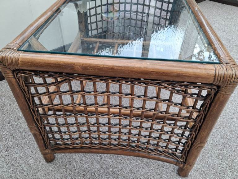 Posting for 7+ yearsCane glass top coffee table
