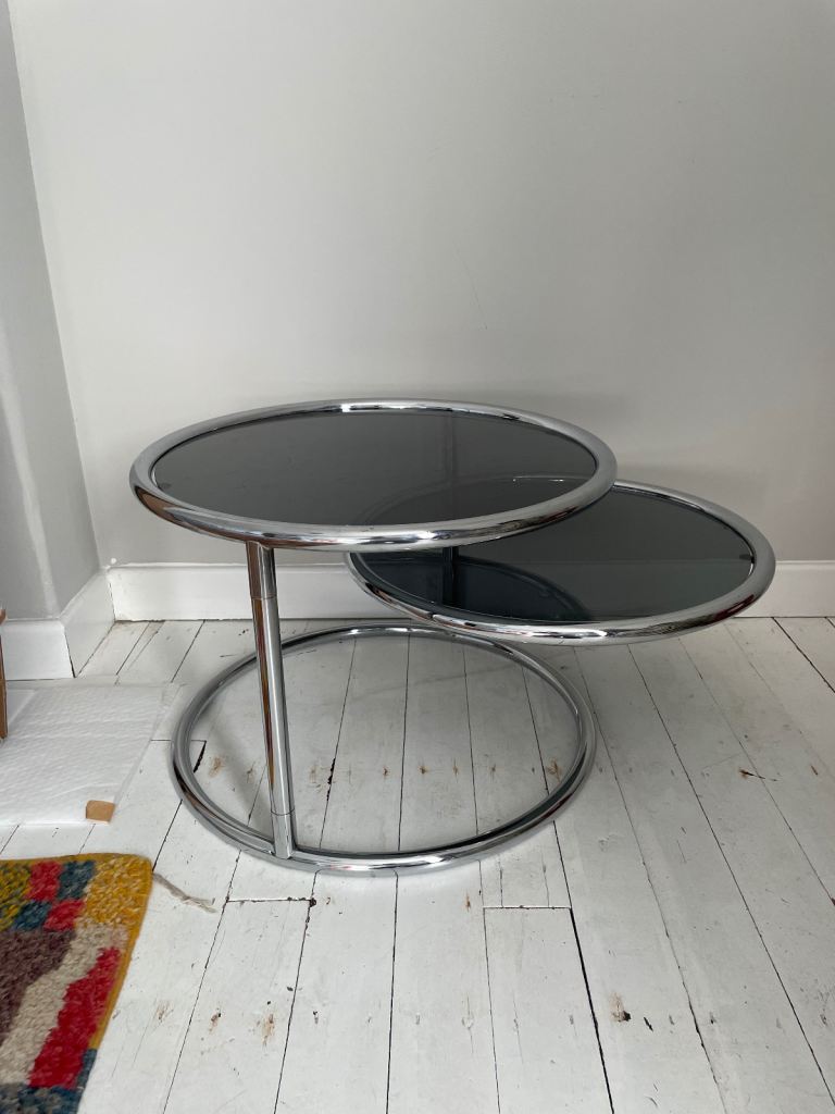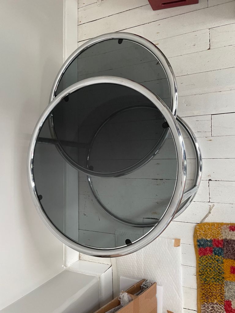 chrome and glass sofa table, some small chips in the glass but otherwise in good conditions