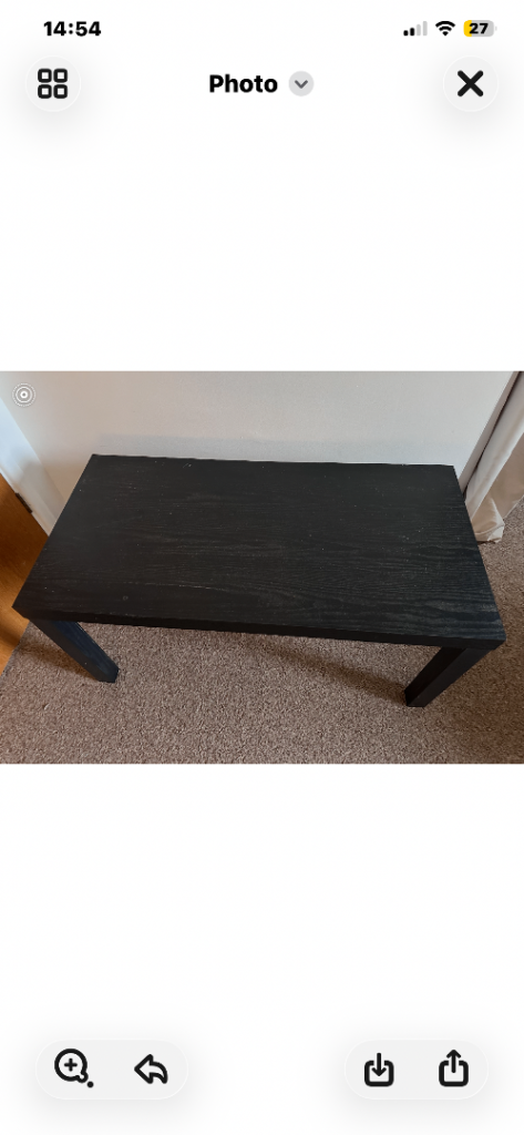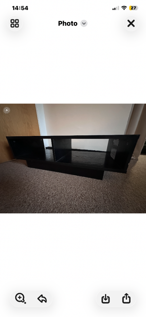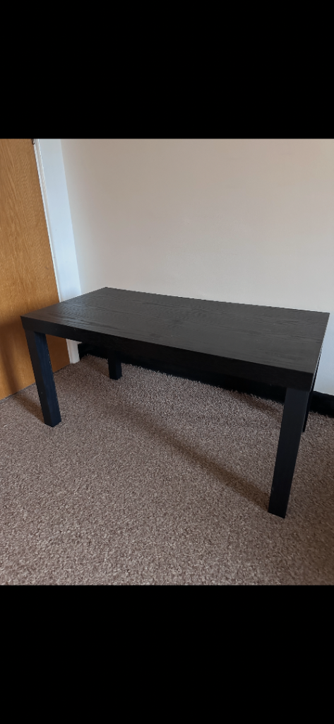 Matching black. Coffee table 90cms long 45cms tall and 45cms deep. Tv unit 90cms longs. 30cms tall. 40cms deep.