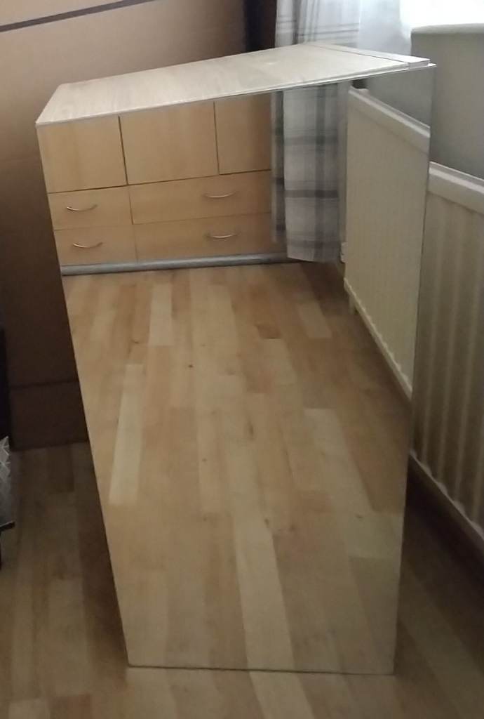 Brand new cooke and Lewis imandra mirror door beech bathroom cabinet very sturdy size 90cmx40cmx36xcm,door can be right or left opening, can be wall mounted has 2 glass shelves, I have 3 available one is made up the others are flat packed still in boxes, £15 each they cost over £100 each
